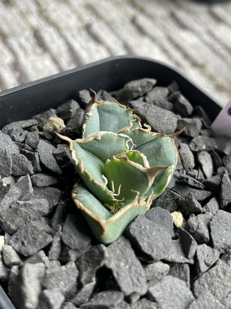皇冠のような禾に悪魔くんのような鋸歯のウネリをもつ、自分の大好物な株!親株を胴切りした数少ない子株になります。さらにライムグリーンでなかなか出会えない株ですので是非この機会に!!!