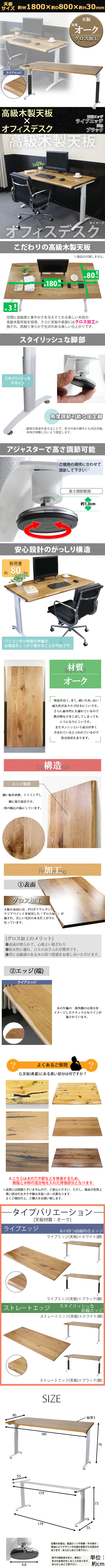 | 商品名 | 送料無料 オフィスデスク デスク 約W180×約D80×約H76 約W1800×約D800×約H760 オーク材 高級 木製 天板 グロス加工 耐荷重約80kg(脚部) 平机 ワークデスク 事務机 パソコンデスク PCデスク 事務デスク オフィステーブル オフィス家具 会社 事務所 会議用 ライブエッジ 脚色 ブラック t016180oakg |