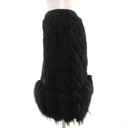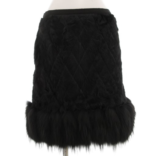 レッド ヴァレンティノ RED VALENTINO ヤギファースカート フレア フォックス混 毛皮 ひざ丈 40 黒 ブラック /GV ■GY47 レディース