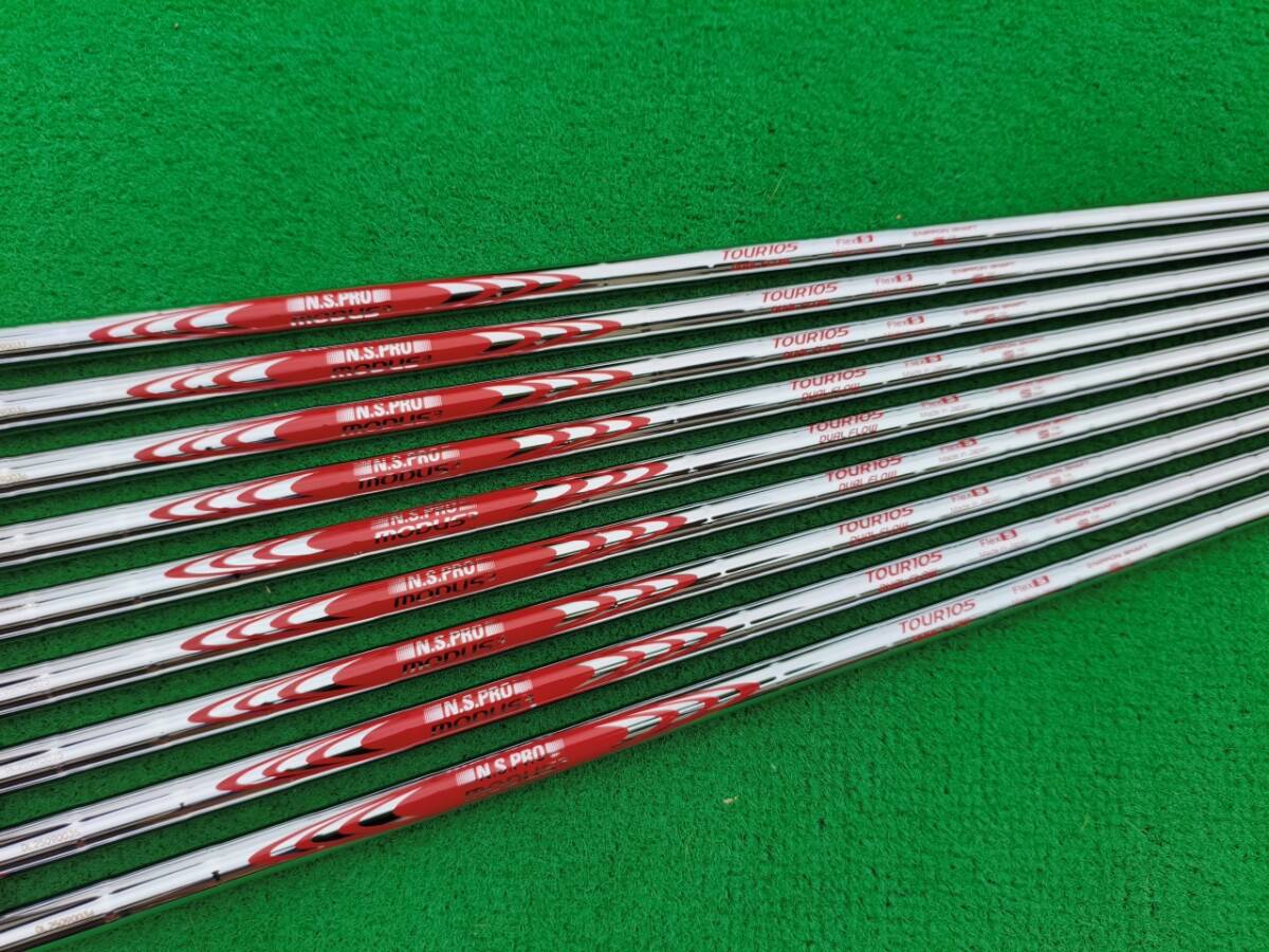 新品即抜き N.S.PRO MODUS3 TOUR105 DUAL FLOW アイアン用スチールシャフト Flex S(#5 ~ #9、ウエッジ用 4本 )計9本 グリップ付き  の出品になります。
