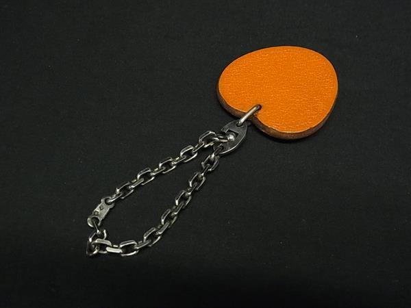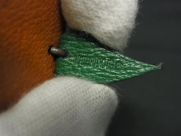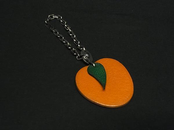 1円 HERMES エルメス フルーツポルトクレ レザー アプリコット シルバー金具 キーホルダー バッグチャーム オレンジ系 FR5959