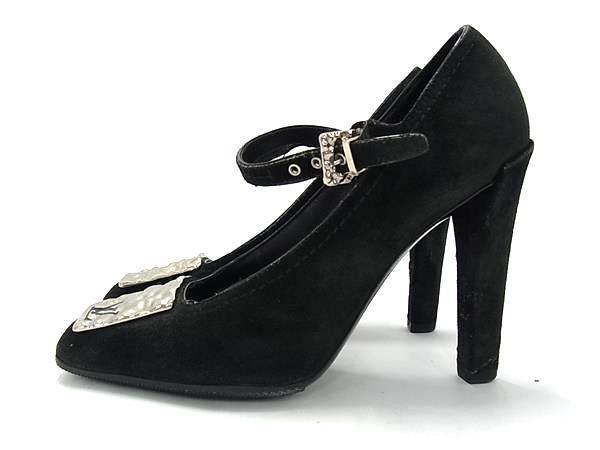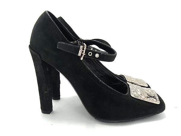 1円 LOUIS VUITTON ルイヴィトン スエード ハイヒール ピンヒール パンプス 表記サイズ35 1/2(約23cm) 靴 ブラック系×シルバー系 FP7682