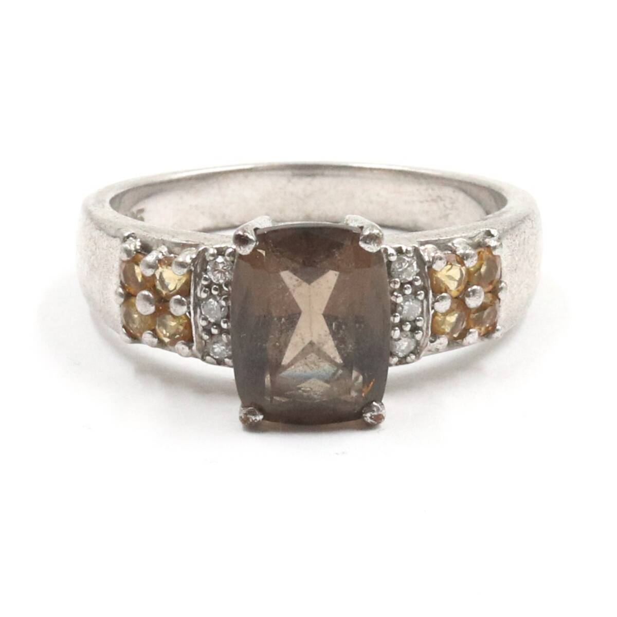★【ノーブランド扱い】 シルバー 925 カラーストーン ラインストーン リング 指輪 サイズ約19号 小物 アクセサリー レディース シルバー系