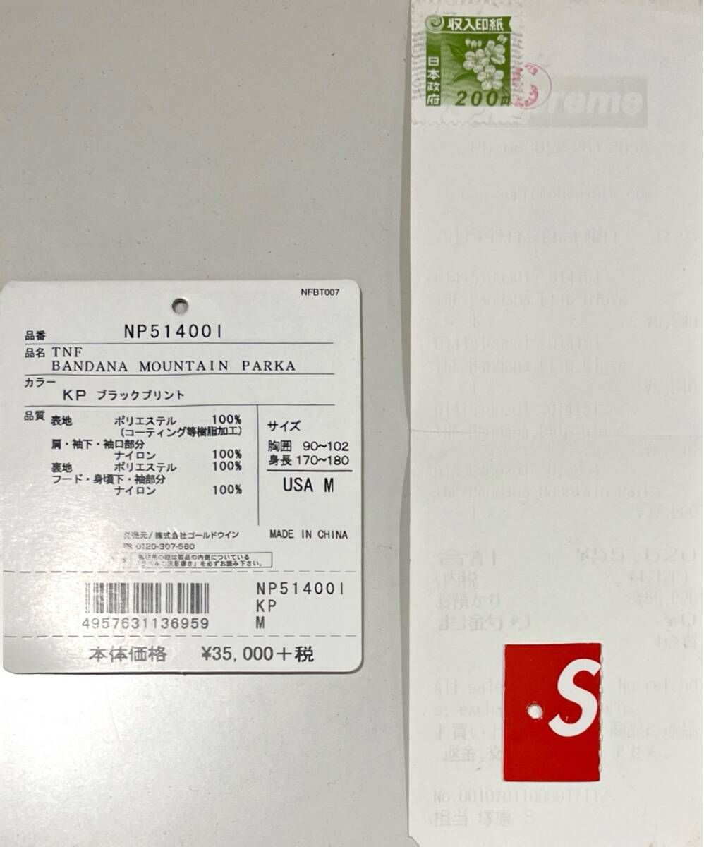 【正規品・レシート原本付】Supreme × The North Face シュプリーム ノースフェイス バンダナ マウンテンパーカー 黒 M 2014AW