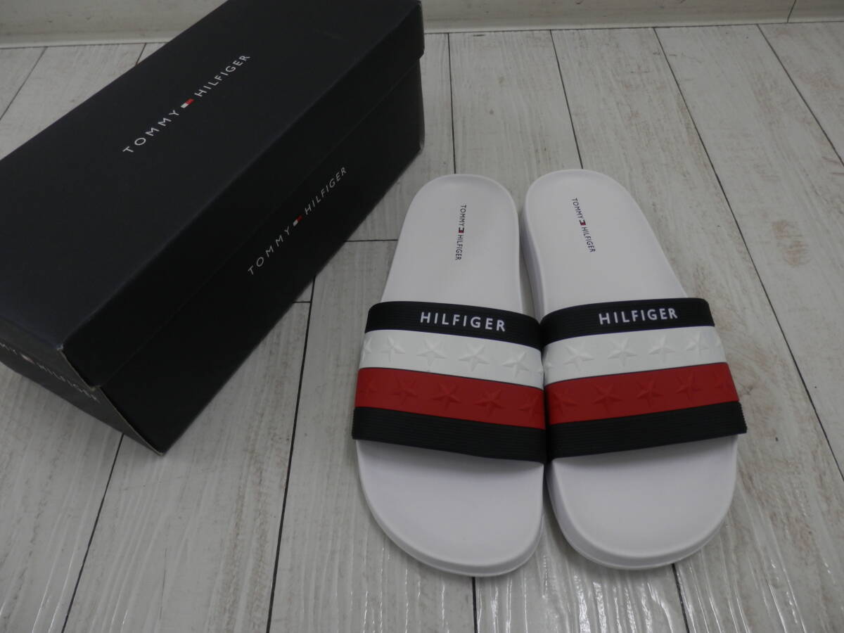 TOMMY HILFIGER トミーヒルフィガー サンダル ホワイト US9 約26cm相当 シャワーサンダル ビーチサンダル tw DULCE 靴 【A521】