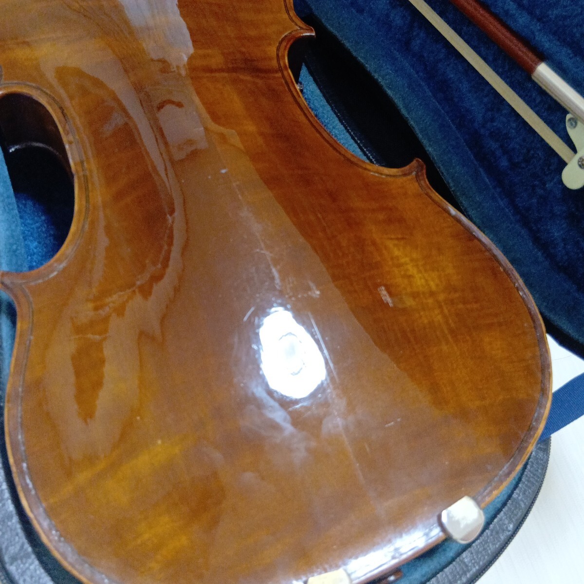 前の所有者さんの説明では、「購入時に100年くらい前のフランスかドイツと聞いています。楽器店では30から40万程度で販売されているランクの楽器ではないか」とのことでした。