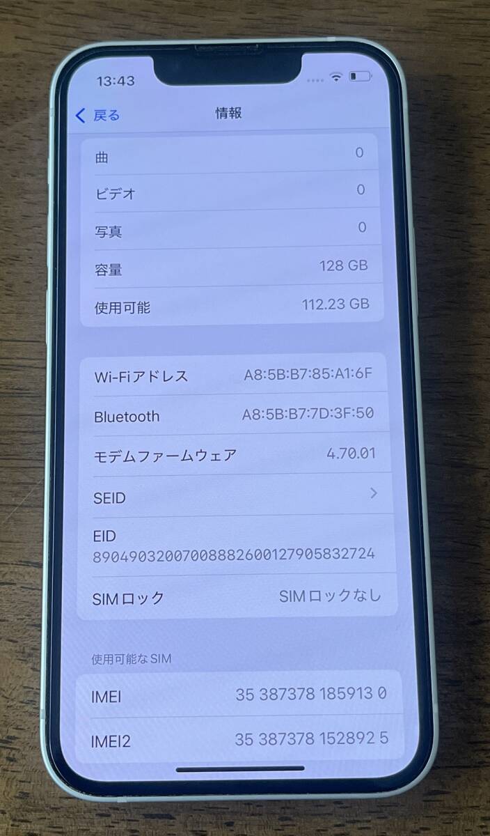 | 商品説明 | Apple iPhone 13 mini です。 容量は128GBです。 色はスターライトです。 SIMフリーです。 出品する直前まで使用しておりました。 保護フィルム・ケースを使用していたのでキズはないと思われます。 保護フィルムがきれいな状態なので付けて出品いたします。 【仕様】 ・メーカー:Apple ・モデル:iPhone 13mini ・容量:128GB ・キャリア:SIMフリー ※メインは楽天モバイルで、海外SIMカードも使用していました。 ・カラー:スターライト ・OS:iOS 18.6 ・バッテリー:83% ・IMEI: 353873781859130 ・付属品:外箱のみ |