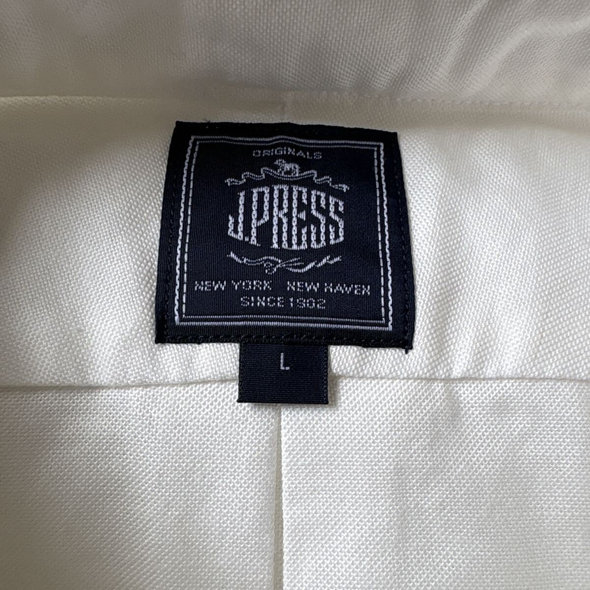 新品 タグ付き J.PRESS ジェイプレス 長袖 アービング オックスフォード ボタンダウンシャツ ホワイト 白色 Lサイズ 綿100%