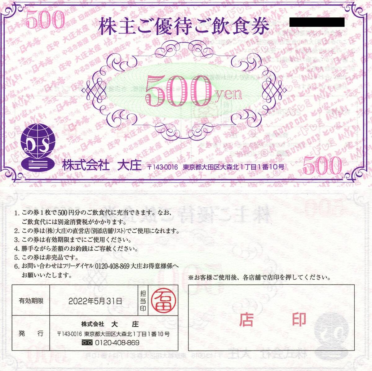 大庄 株主優待券 500円x6枚=3000円 有効期限=2026年5月31日