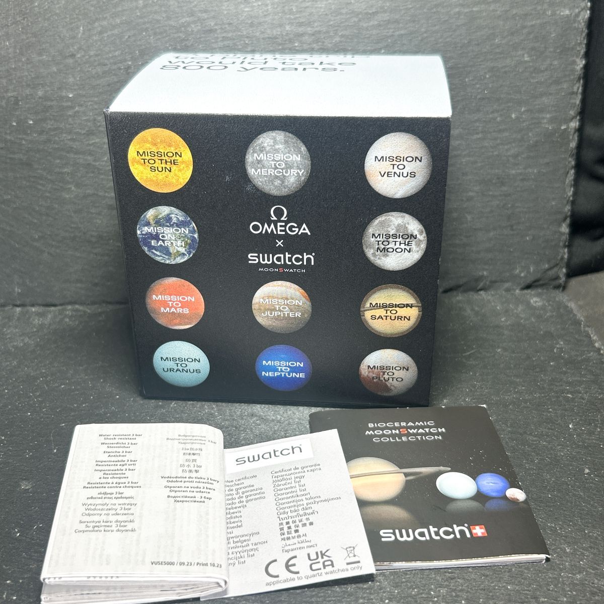 美品 Swatch × Omega ムーン スウォッチ × オメガ MISSION TO PLUTO プルート SO33M101 バイオセラミック 腕時計 クオーツ 動作確認済