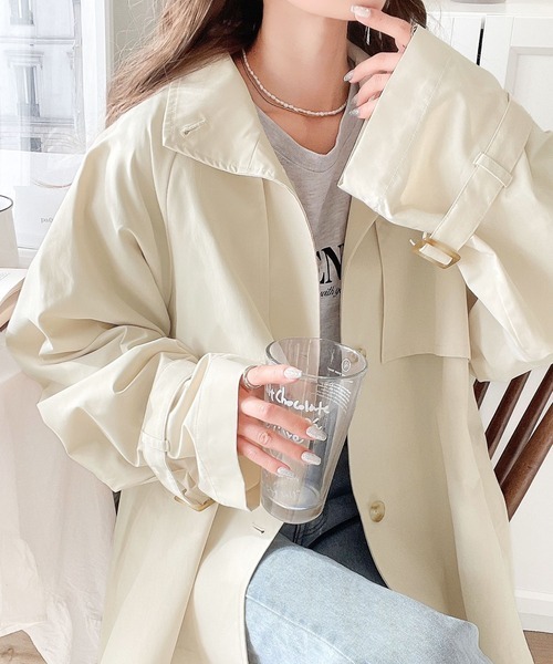 参考商品名:大人ガーリーなポンチョ風トレンチ。バックタックトレンチコート
