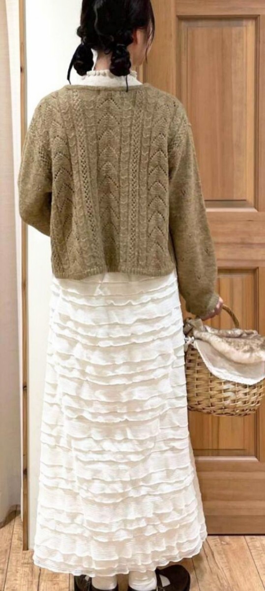 繊細な透かし模様とリボンのワンポイントが、コーディネートに愛らしい表情をプラス。