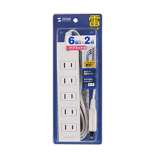 ※配送の送り主はサンワサプライ(株)と記載されています。沖縄・離島配送不可となります。 当店は正規販売代理店です。 特長 雷ガードを内蔵しており、接続機器を雷から守ります。雷ガード作動中は確認ランプが点灯します。 ※ランプが消えた場合は効果がなくなっていますので新しいものに交換してください。 トラッキング火災予防に極めて有効な絶縁キャップ付きのスイングプラグを採用しています。 スチール机に仮固定できる便利なマグネット付きです。 ホコリの侵入を防ぐ、防止シャッターが付いているので安全です。 気をつけておりますが、タイミングによっては在庫切れの場合があります。 仕様