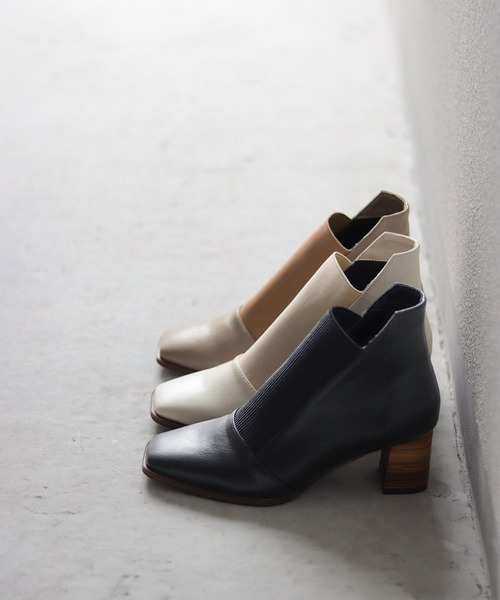 参考商品名:ウッドヒールのゴムフィットアンクルブーティ風パンプス /r
