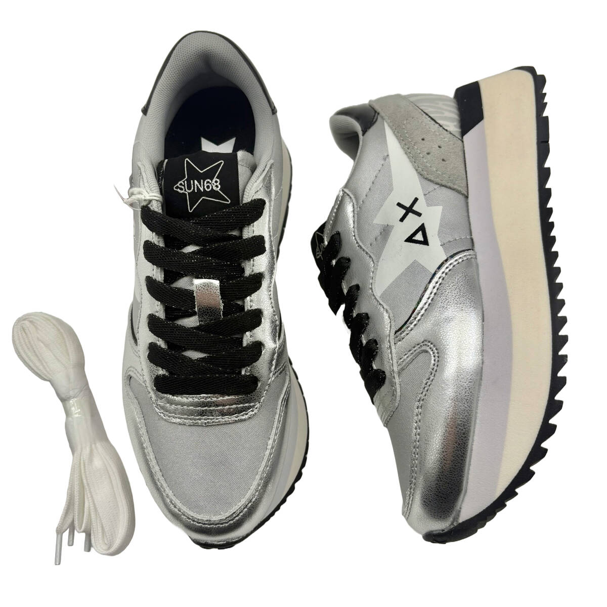【サイズ選択】25年SS最新レディース物◆SUN 68■定価3万円最上級モデル 厚底ソールスニーカー◆ローカット◆Z214L-06◆シルバー◆SUN68◆