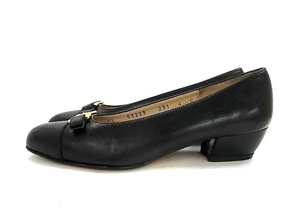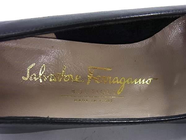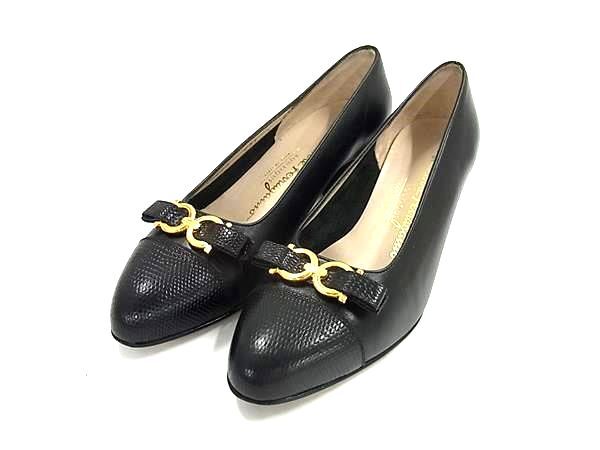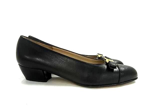 ■美品■ Salvatore Ferragamo フェラガモ ダブルガンチーニ レザー ヒール パンプス 表記サイズ4 (約21.5cm) 靴 ブラック系 DK5944