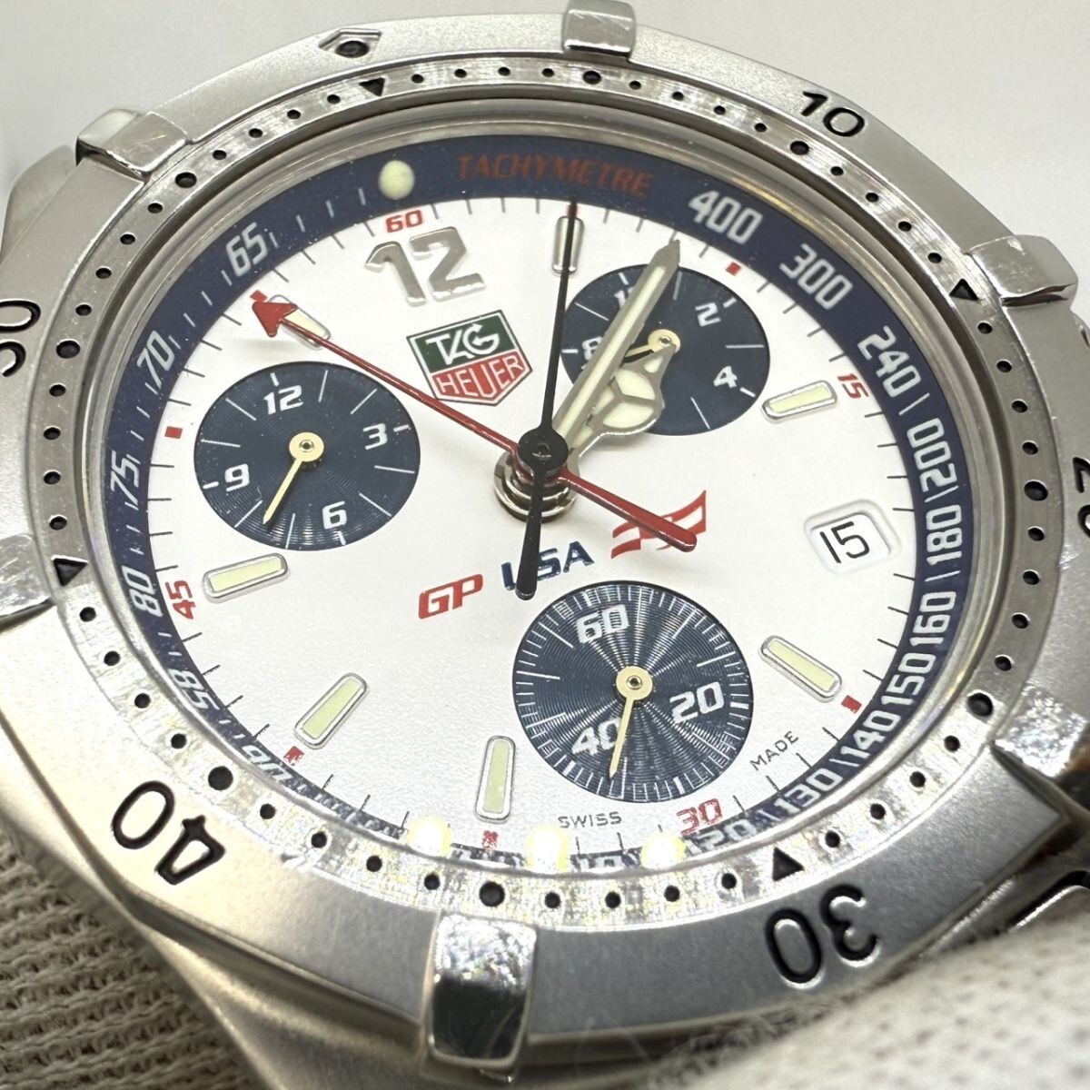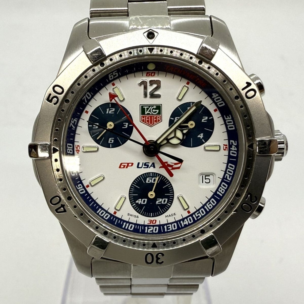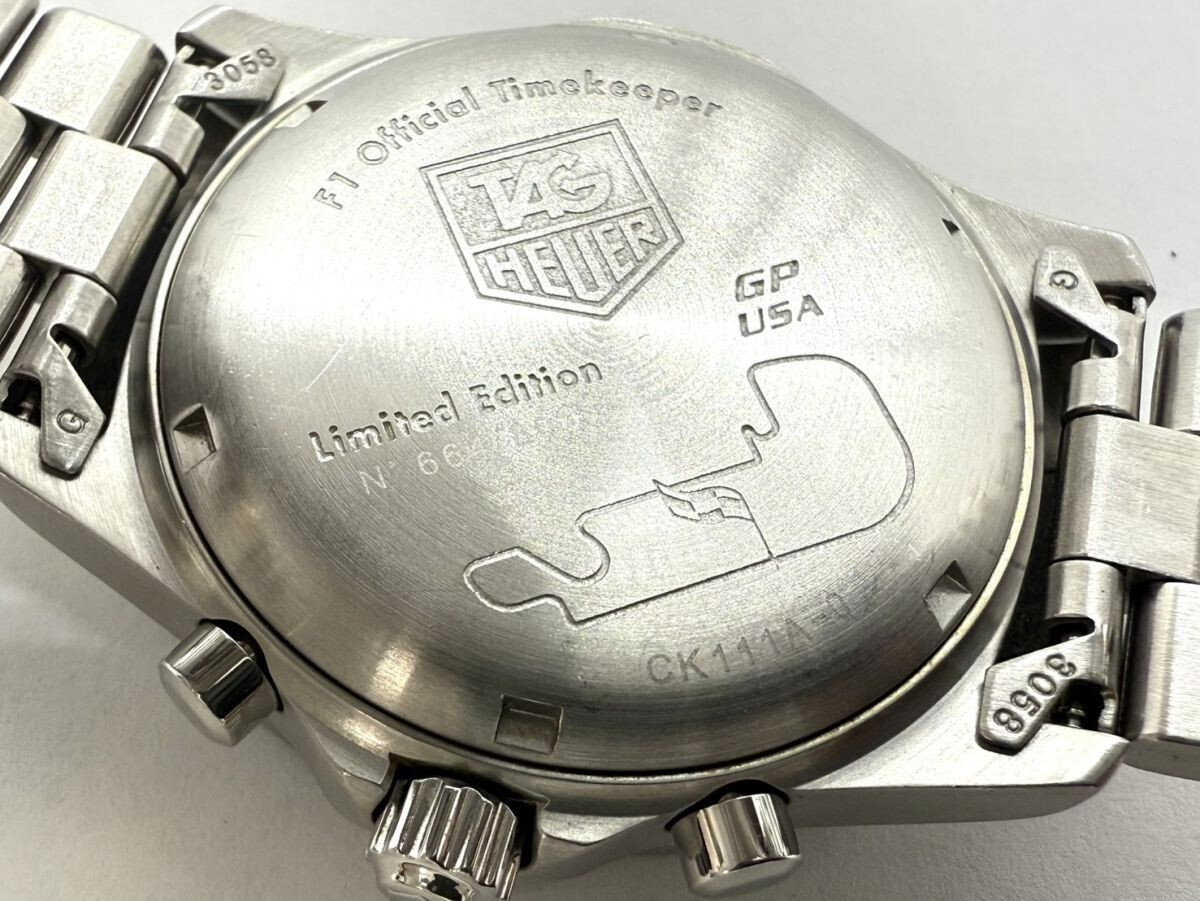 取り扱っている商品は未使用・未開封も含め、全て一度は人の手に渡った一点ものの中古・ジャンク扱いでの商品です。 当方素人ですので肉眼で確認できる簡易的な検品、採寸、および簡易梱包となります。 ※稼働の記載につきましては秒針等の確認のみとなり、全体の動作を保証するものではございません。 また、出品時の中古品の動作状況となりますので、予めご了承の上でご入札ください。 不動の表記につきましてはクォーツ式のムーブメントの場合、動作未確認の状態となります。 電池交換後、不具合があった場合でも返金、返品の対象とはなりませんので、予めご了承くださいますようお願い致します。 細かな日差、オーバーホール状況、社外パーツの使用に関しては保証しかねますので、ご理解いただけた上でのご入札をお願い致します。 上記を踏まえた上で中古品、ジャンク商品として出品させていただいておりますので、全てご理解いただけた上でのご入札をお願いいたします ------------------------------------------------------------------------- 【メーカー】 TAG HEUER タグホイヤー 【モデル名】 2000 【型番】 CK111A-0 【シリアル】 664/800 【サイズ】 直径約38mm 腕回り約17cm 【付属品】 画像参照 【稼働状態】 稼働 【その他状態】 リューズ動作 時間:OK 日付:OK 曜日: クロノグラフ針動作OK ベゼル回転動作OK ------------------------------------------------------------------------- 画像にあるものが全てです。 他詳細は画像にてご判断ください。 ※目立つ傷や汚れを中心に写真を撮っておりますが、画像に写りきっていない傷等がある場合もございます。予めご了承ください。 ※商品を多数出品している関係で、稀に商品説明や画像に誤りがある場合がございます。予めご了承ください。 こちらのページをご覧いただく際は、商品説明文と掲載している画像の全てを確認いただいた上でご入札ください。 | |||||||