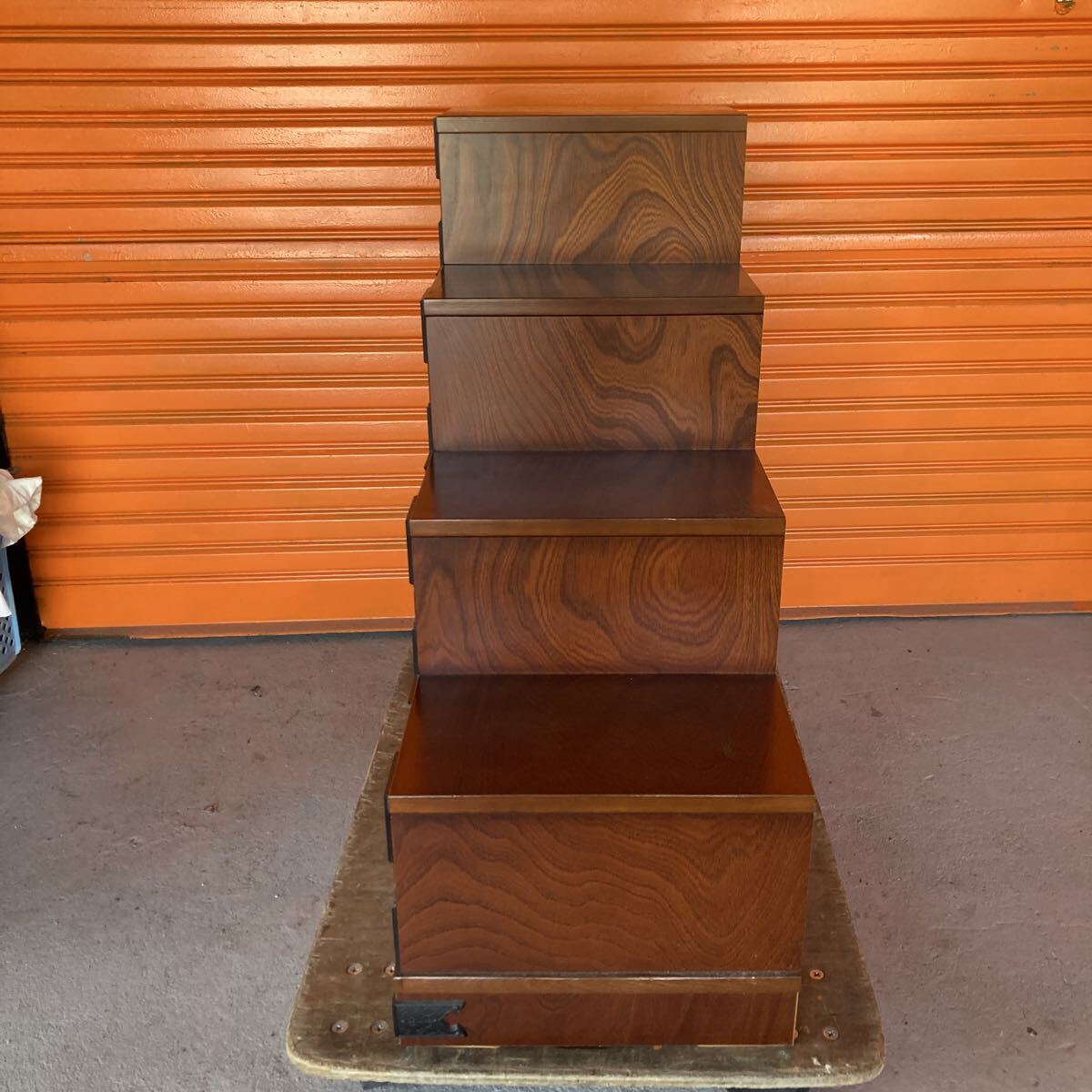 民芸調 からくり階段箪笥 右下がり 和家具 天然木製 小物入れ 収納 アンティーク風 小箪笥 引き出し 中古品