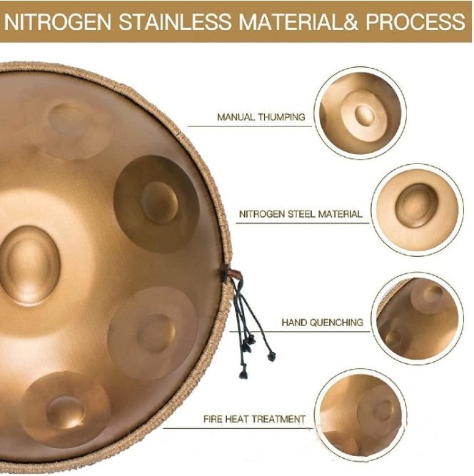 ●各ハンドパンドラムは慎重に手でチューニングされ、正確に手カットされています。新しい炭素鋼は、チタン鋼の過剰な共鳴によって引き起こされるドラッグサウンドを回避し、音質がより純粋で層状になります。