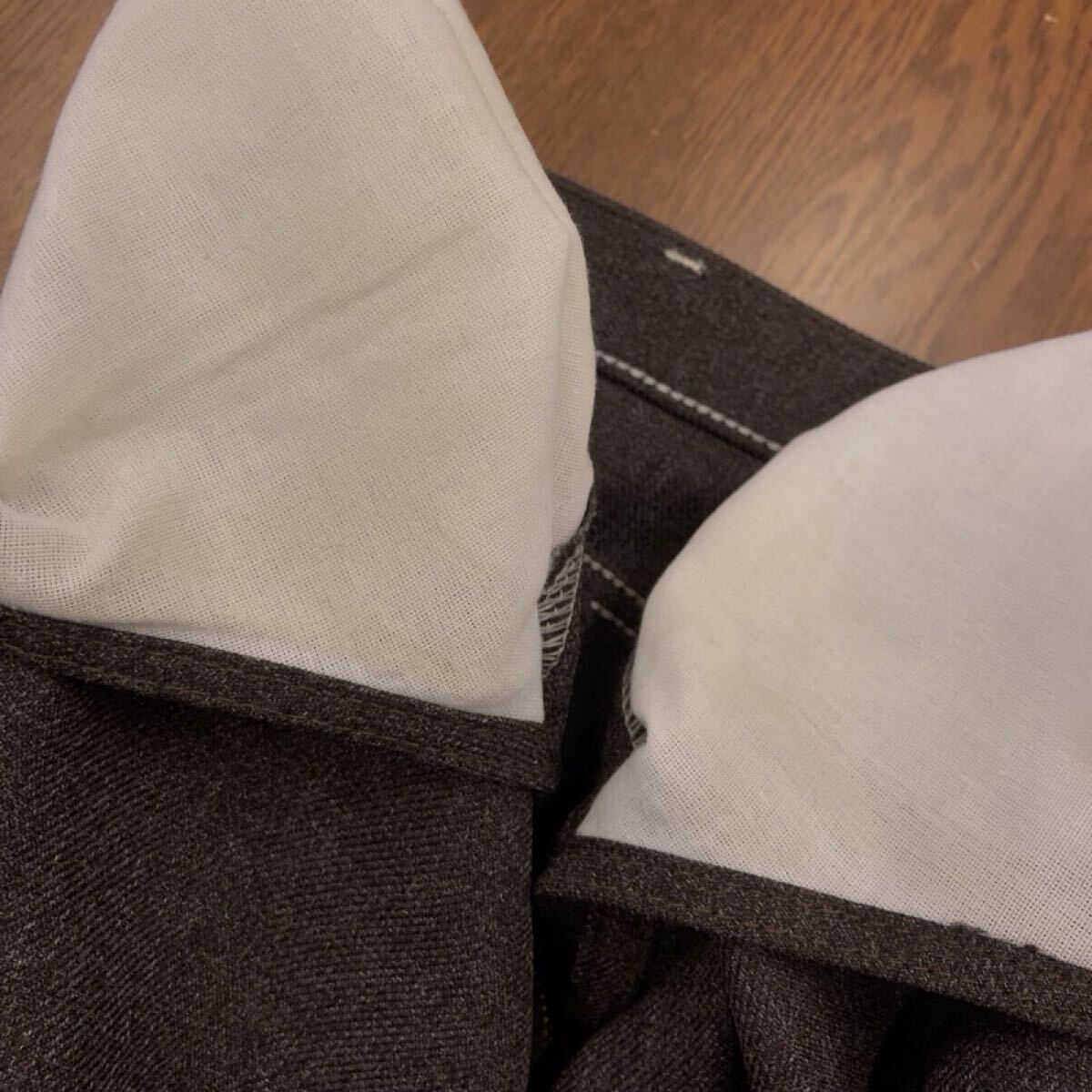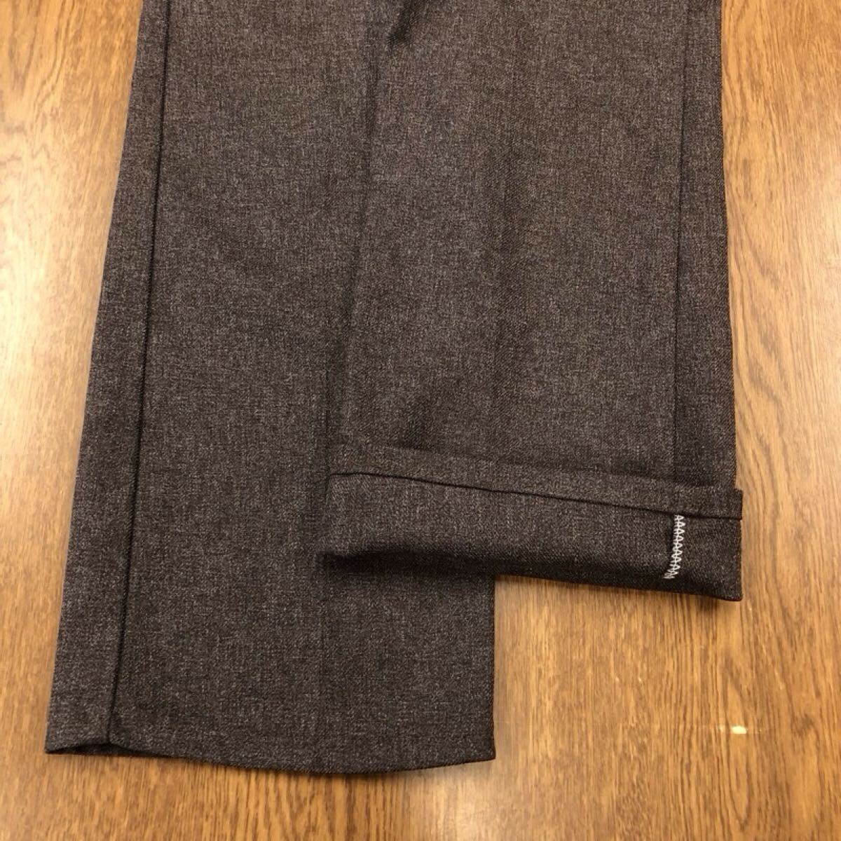 ●ウエスト→フロントボタンやジップは閉じ、ウエストの表中心と後ろ中心を合わせて机や床など平面な場所に置き、フラットに測れるよう生地を軽く手で押さえ、平置きしたパンツの左右端の最上部を計測、実寸した数値×2の表記をしてます。