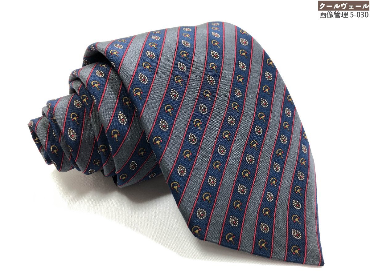 【セリーヌ CELINE】お洒落なレジメンプリント柄♪ シルク ネクタイ (メンズ) ネイビー×グレー×レッド系 ◇17MM8709◇