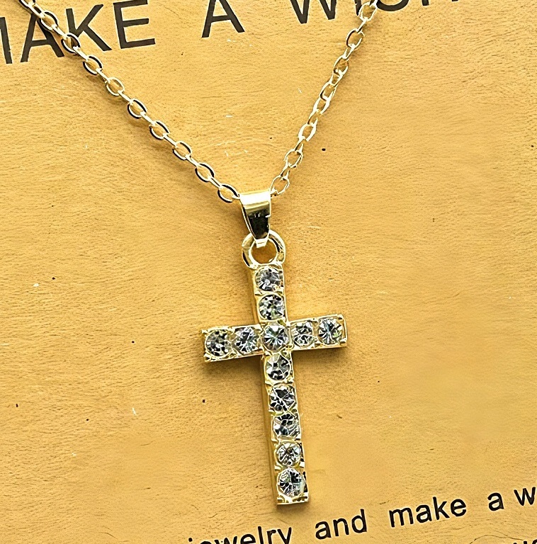新品★送料無料★黄金の十字架クロス 七色ダイヤモンド信仰K18GFゴールドネックレス誕生日プレゼント旅行連休秋祭冬休ギフト 国内発送