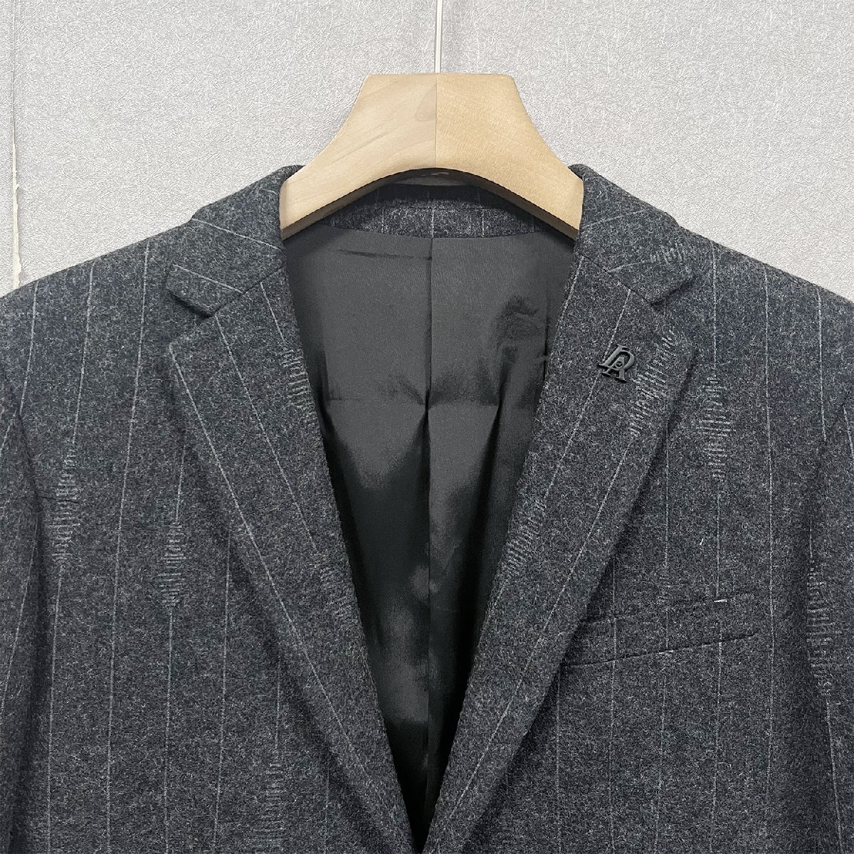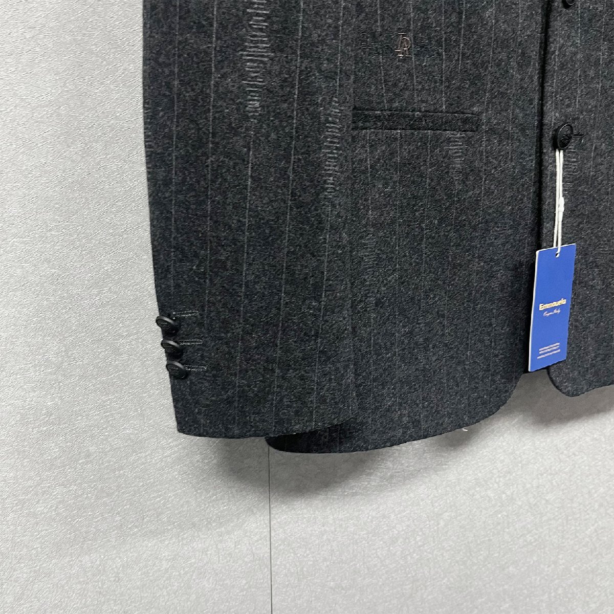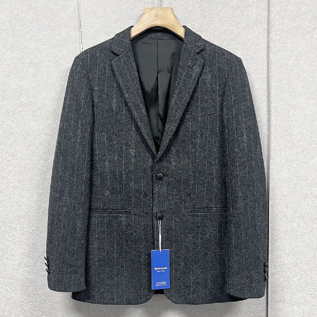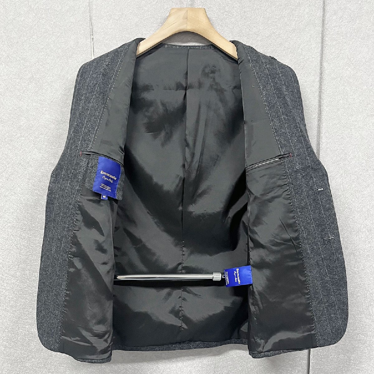 上品・テーラードジャケット 定価6万◆Emmauela・イタリア・ミラノ発◆カシミア100% 保温 ストライプ柄 ブローチ ブレザー 紳士 通勤 L/48サイズ
