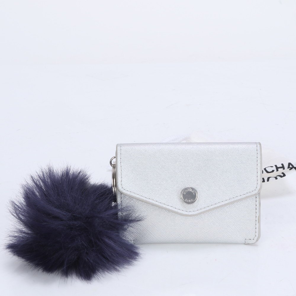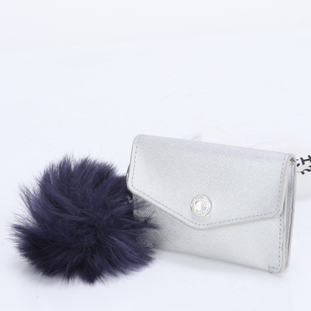 ■美品■マイケルコース■ファー付 カードケース 名刺入れ 二つ折り 財布 コンパクト ウォレット コインケース レディース RRE CA12-4