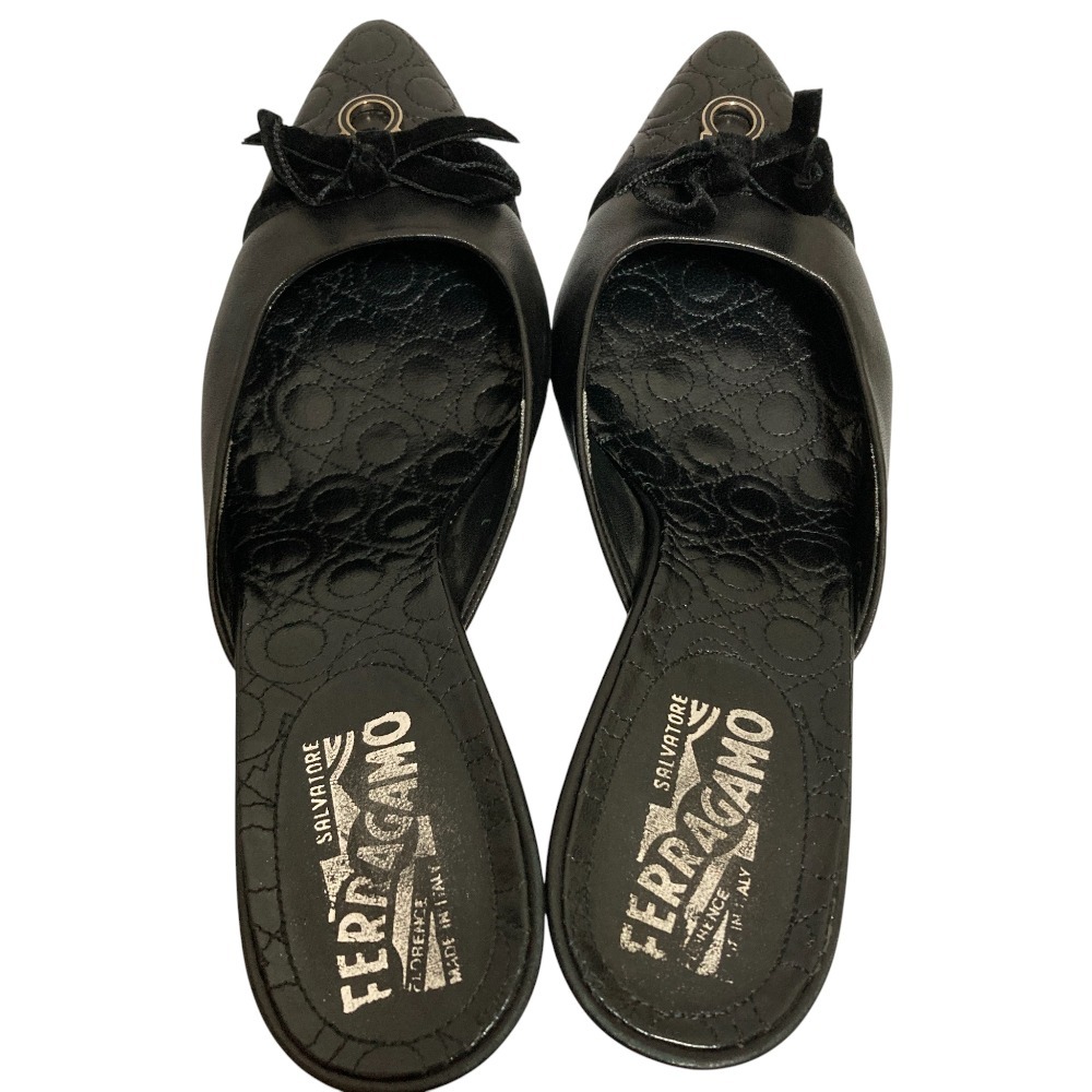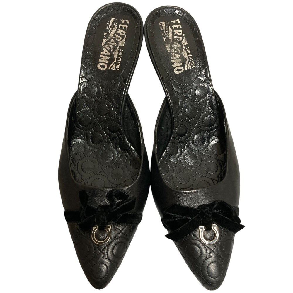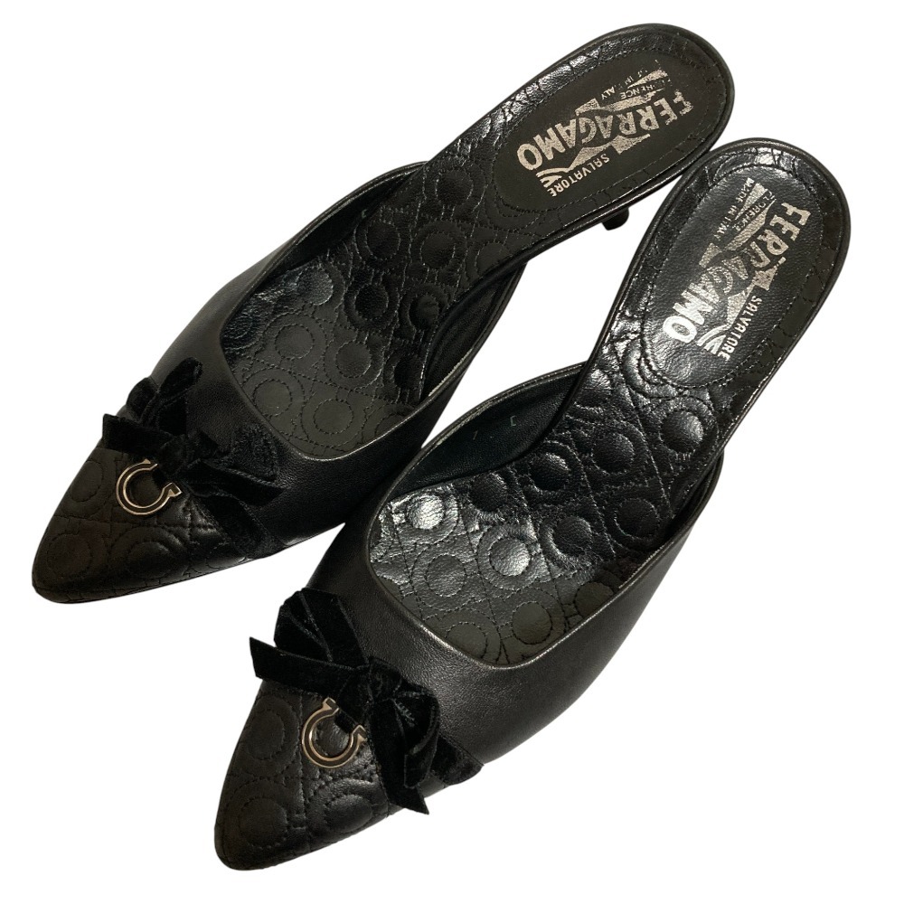 美品 Salvatore Ferragamo サルヴァトーレフェラガモ ガンチーニ レザー ミュール サイズ7 24cm相当 ブラック