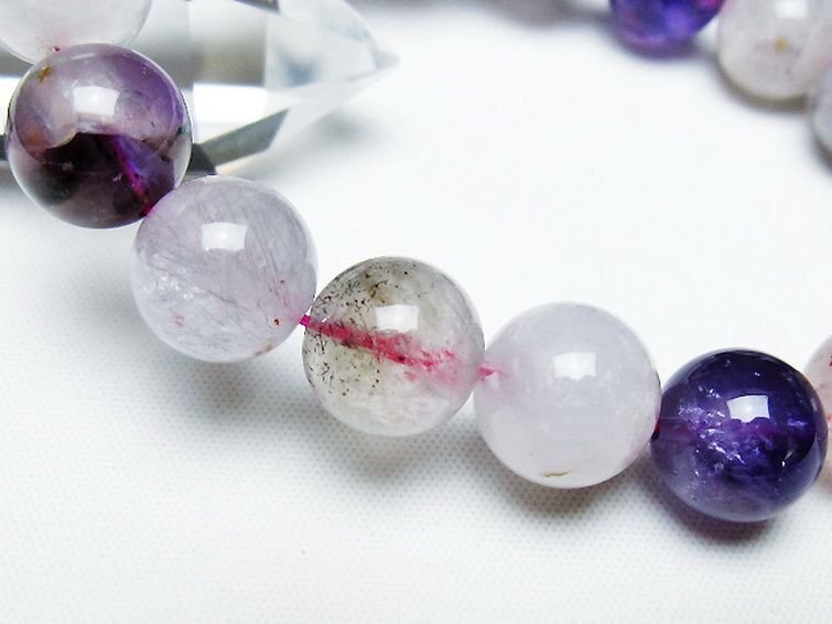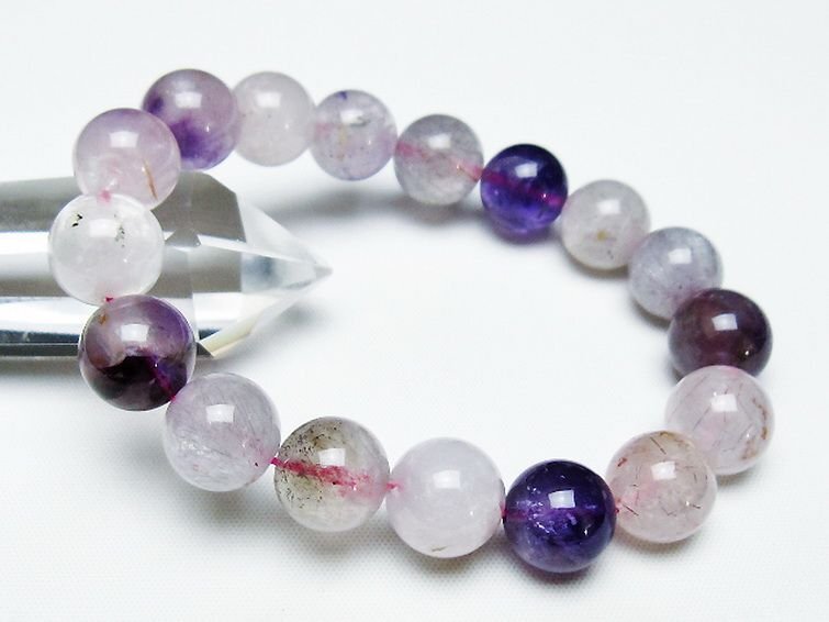 ■商品名: セイクリッドセブンブレスレット ■商品ID: T141-8169 ■商品重量:約 44.9g ■商品サイズ:内周約:170mm(±5mm)粒直径約:12mm(±0.5mm)~13mm(±0.5mm) 【セイクリッドセブン】 セイクリッドセブンは水晶・アメジスト・カコクセナイト・ゲーサイト・スモーキークォーツ・ルチル・レビドクロサイトの7つの鉱物を内包した天然石です。 また、セイクリッドセブンと同じ成分のものでブラジルのエスピリトサント鉱山から産出されたものはスーパーセブンと呼ばれ、セイクリッドセブンとは区別されます。 セイクリッドセブンは複数の鉱石のエネルギーが調和しており持つ人を選ばないといわれています。 7つの鉱物のパワーを受け継いでいるので総合的に運気を高めたい、全ての石の効果を同時に得たいという方には打って付けの石といえるでしょう。 また、内なるパワーを引き出し潜在能力を開花させる効果も期待できますので、自分自身の可能性を広げたいと考えている方にもおすすめです。 加工されたもので7つの鉱石を全て内包したものは非常に稀ですが、原石の状態で7つの鉱物が入っていれば加工後の状態であってもすべての鉱物のパワーが秘められているといわれています。 ⇒ セイクリッドセブンをもっと詳しく ◆ワンポイント情報 セイクリッドセブンは強い自浄作用を持つとされています。頻繁に浄化する必要はありませんが、石が疲れているように感じた時はクラスターや流水などで浄化してあげるようにしましょう。 内包しているスモーキークォーツやアメジストは紫外線によって退色する恐れがあるため、日光浴での浄化はおすすめしません。 |