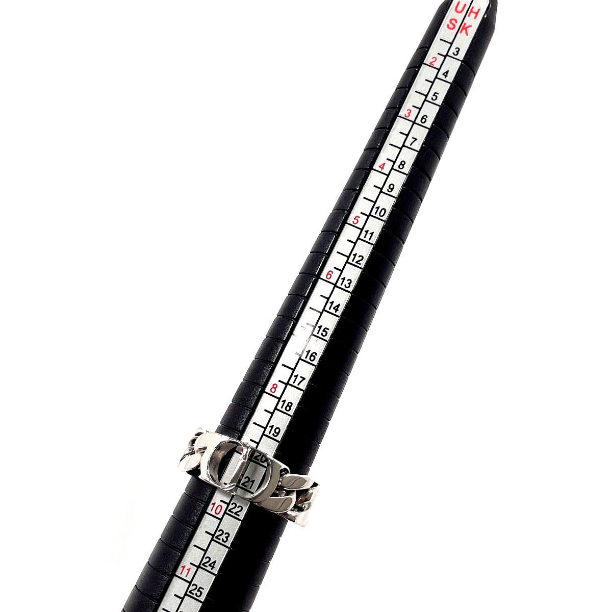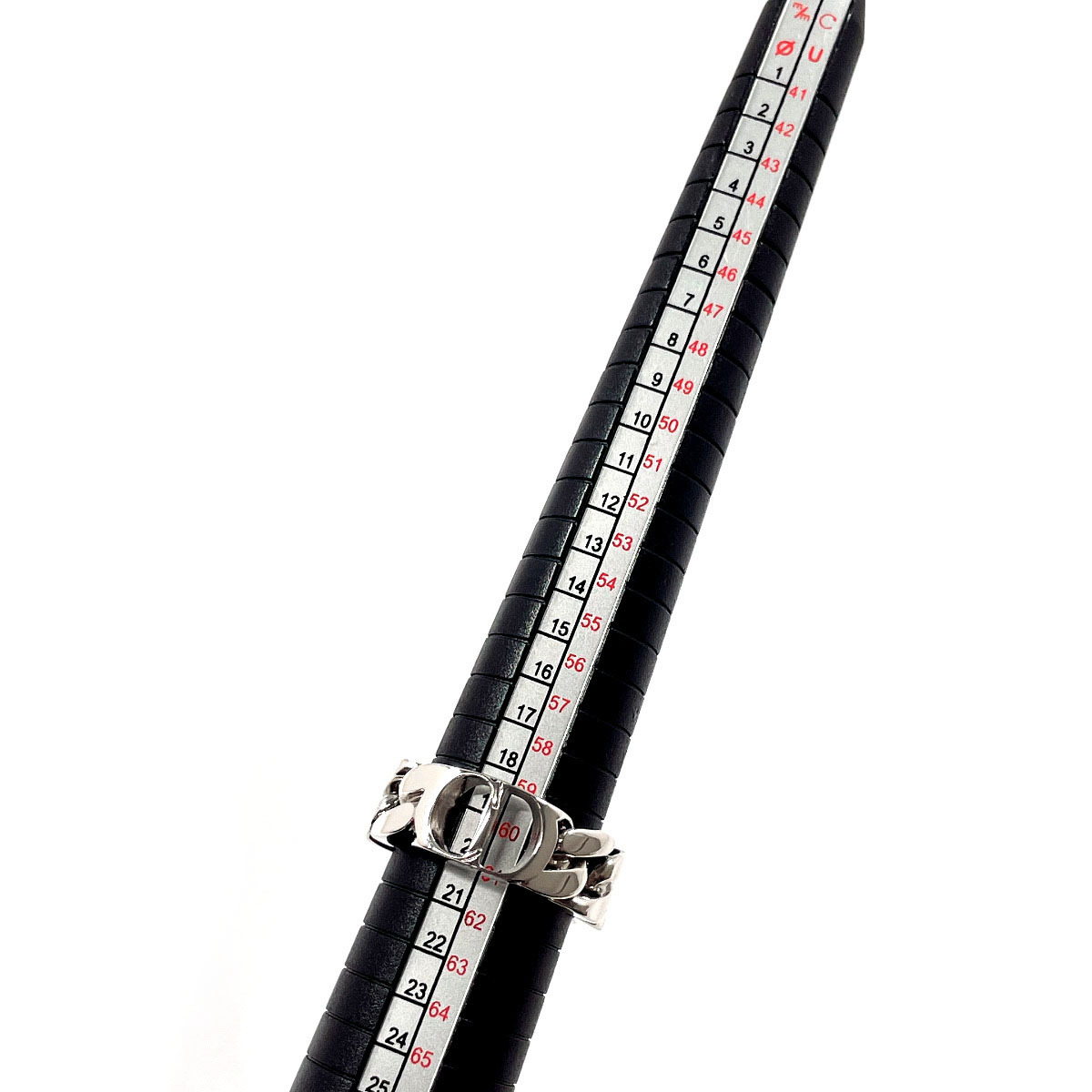 | 商品説明 | モダンで個性的なスタイルの中に、タイムレスな魅力を宿す「CD Icon」リング。ボリューム感のあるチェーンリンクをシルバーで仕立て、立体的で力強いルックを演出するアイコニックなお品です。 |