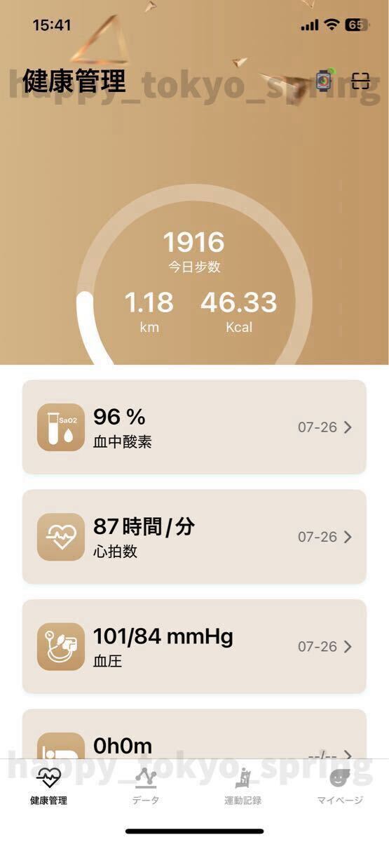 ■さらにスマホとペアリングして、専用アプリから運動記録、血圧、心拍データ、血中酸素などの記録を確認することができます。日常生活や健康管理に非常に役立ちます。