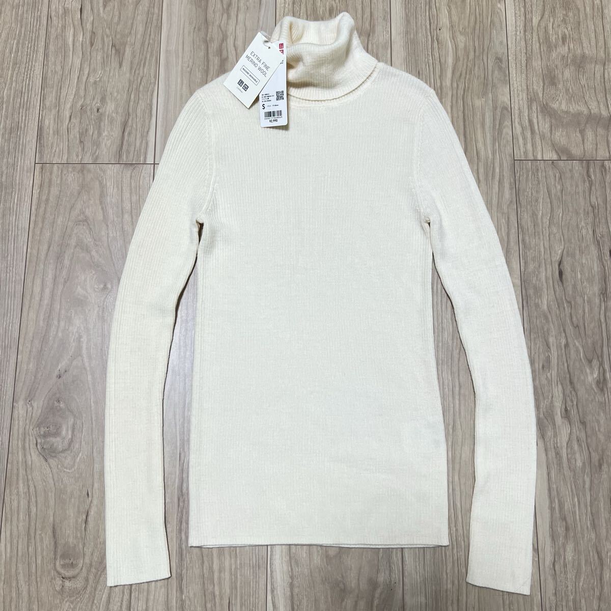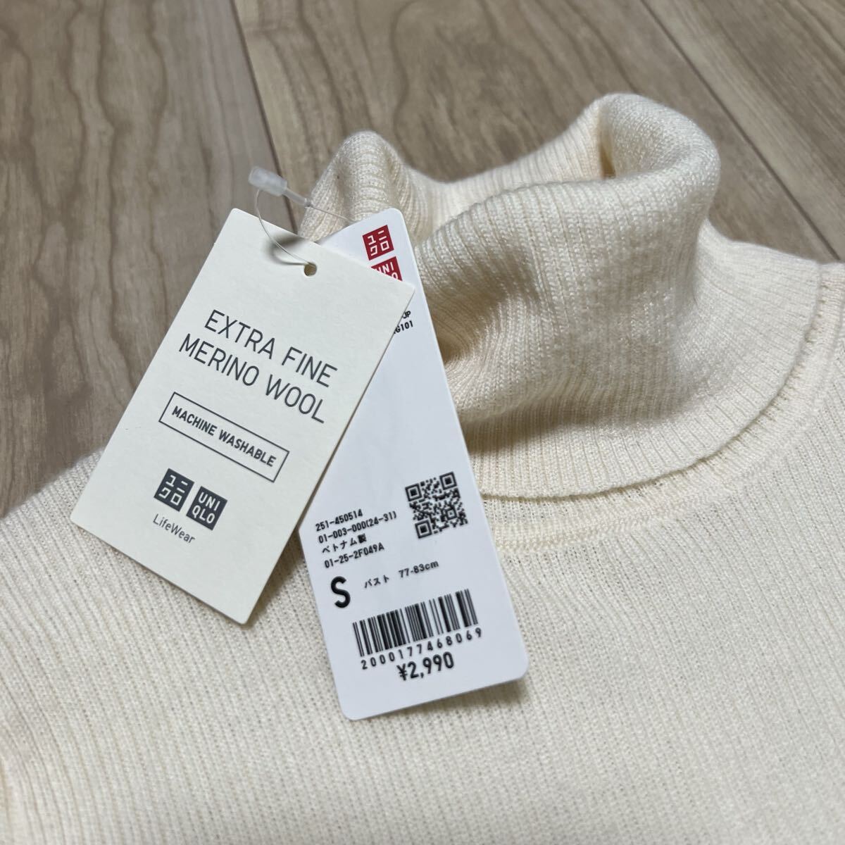★送料360円★新品未使用品 UNIQLO ユニクロ 長袖 リブ ニット セーター タートルネック 白 ホワイト レディース サイズS R-8182
