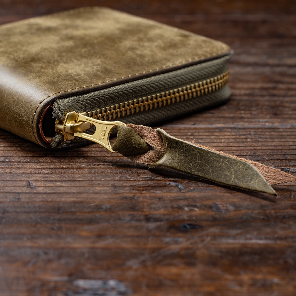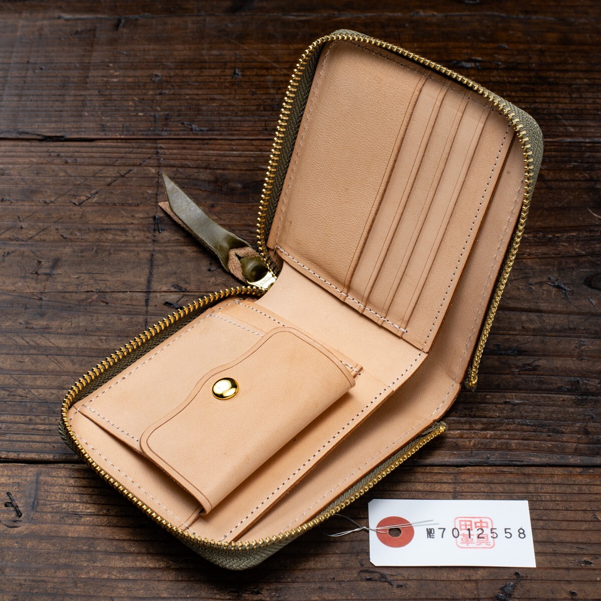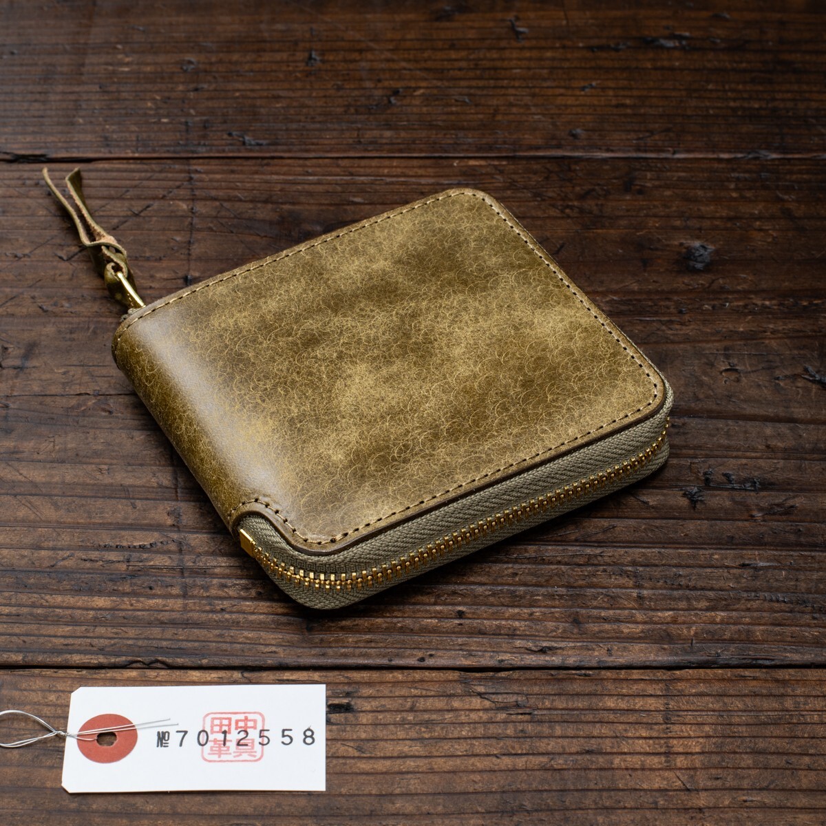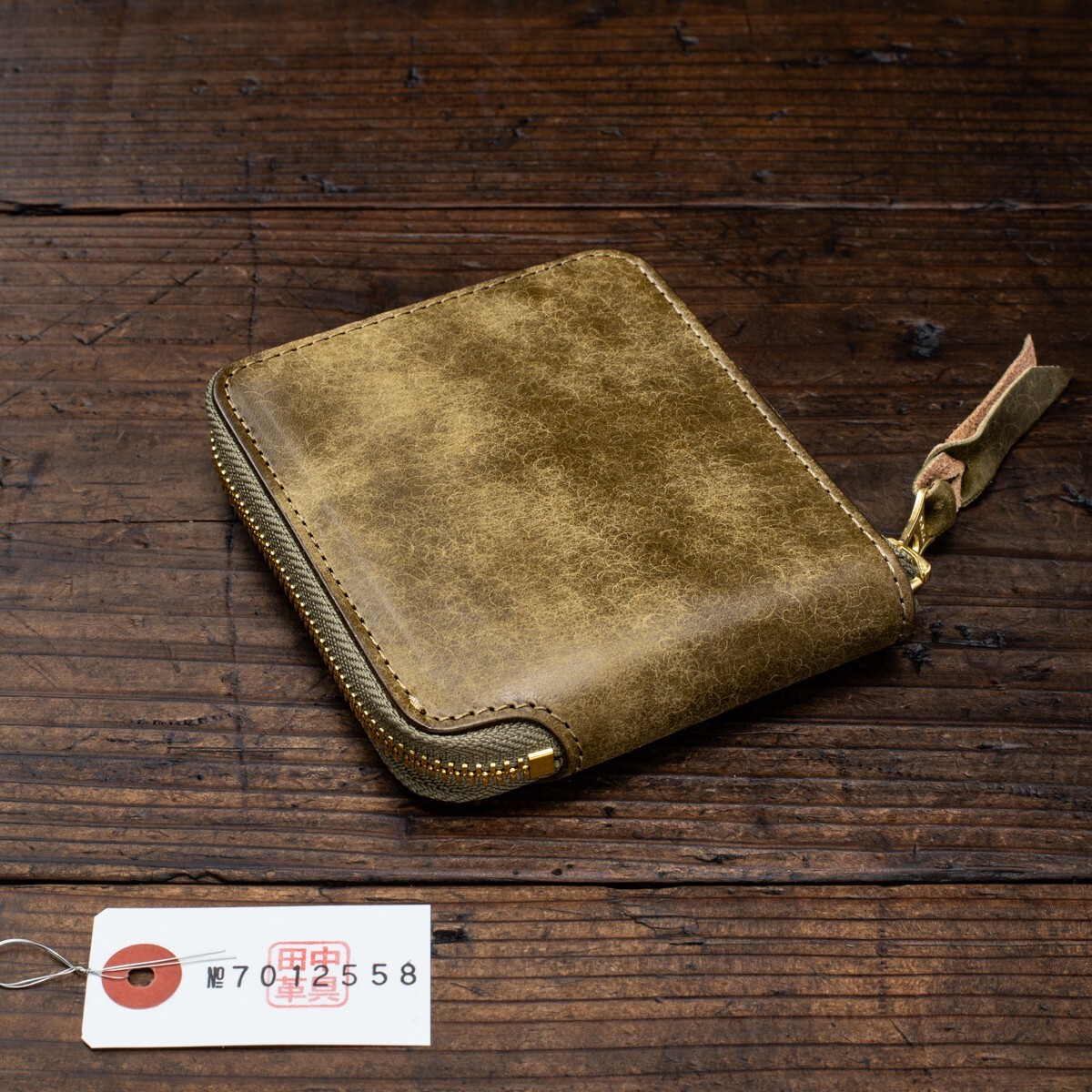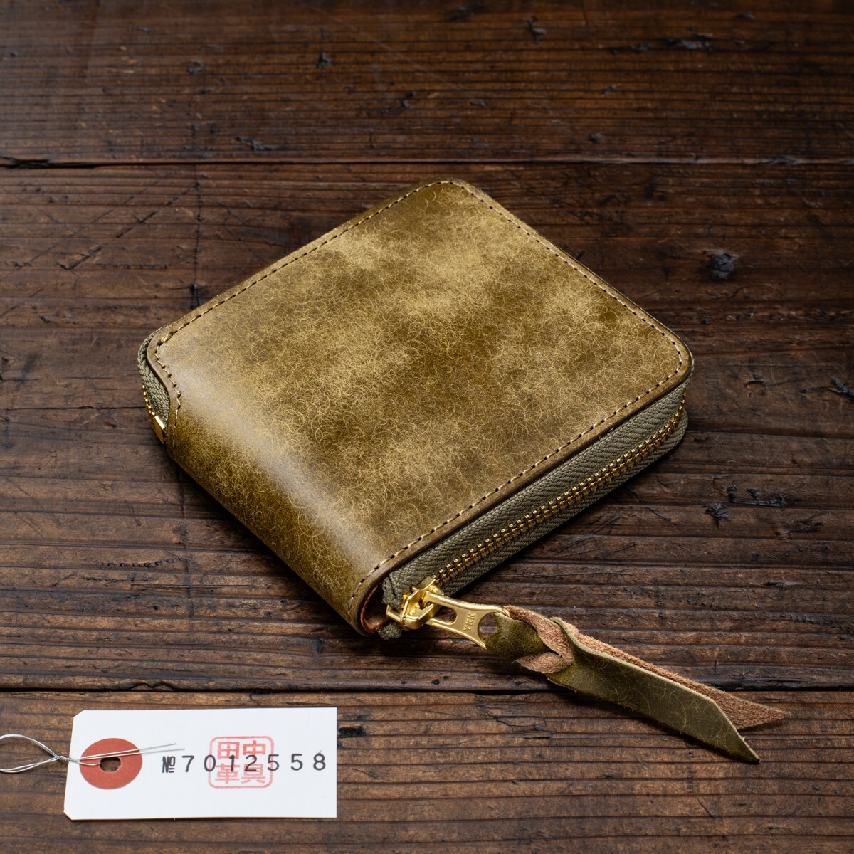 バケッタレザー【牛革】オリーブグリーン メンズ 財布 ラウンドファスナー 新品 未使用 送料無料 1円 緑 スクエア 本革 田中革具