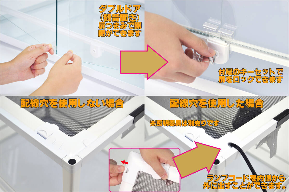 観音開き(前面開閉式ドア)のガラス製テラリウム飼育ケージです。