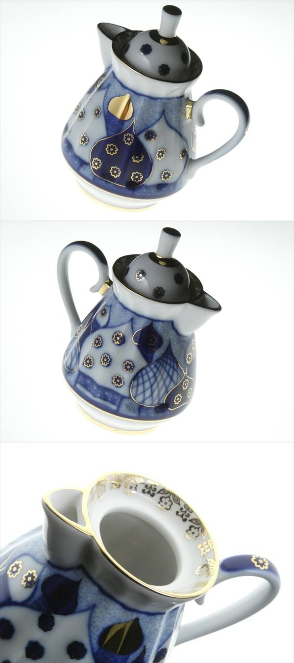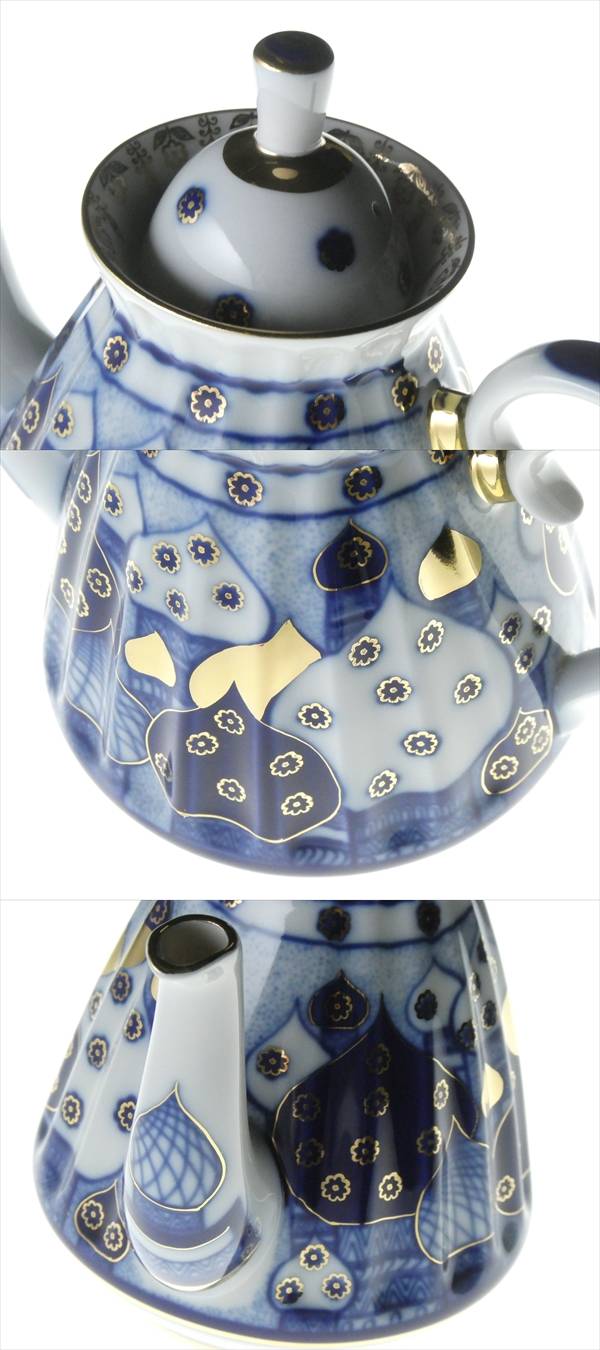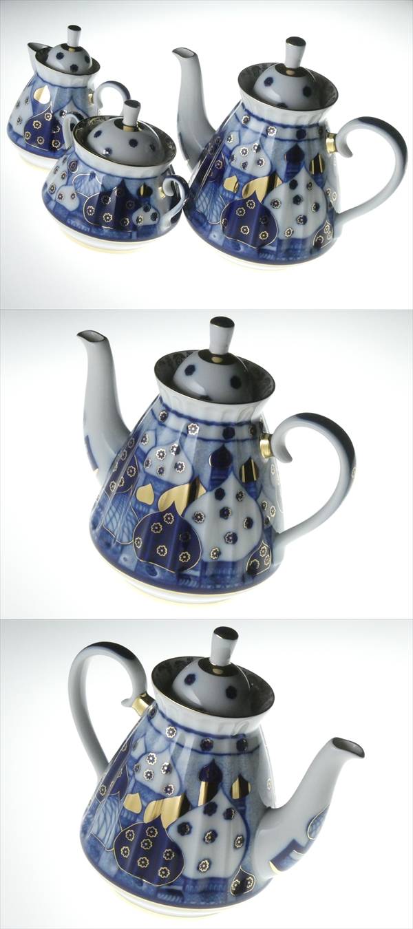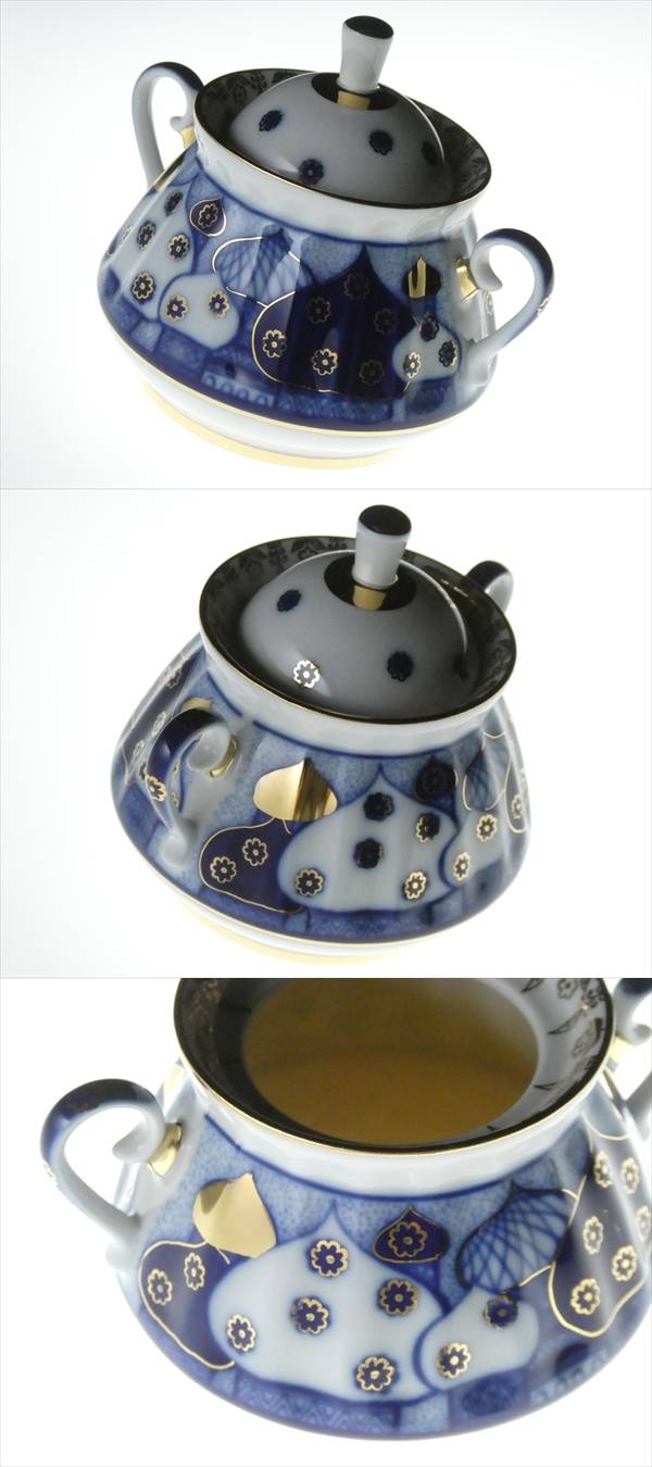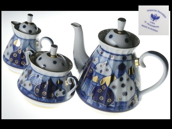 インペリアル ポーセリン ロモノーソフ ロシアンドームズ コバルト 金彩 ① 大型 ポット シュガー クリーマー 計3点 N475