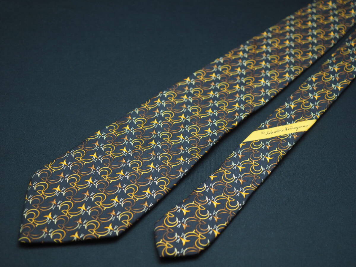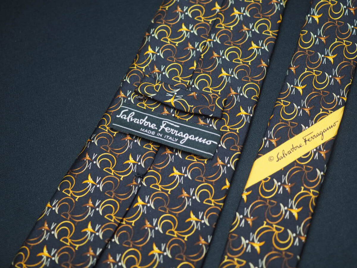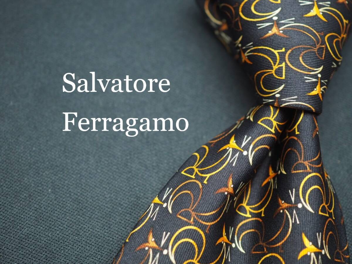 美品【Salvatore Ferragamo サルヴァトーレ フェラガモ】 F2639 ブラック系 SILK ブランド ネクタイ 古着 良品 転売 仕入