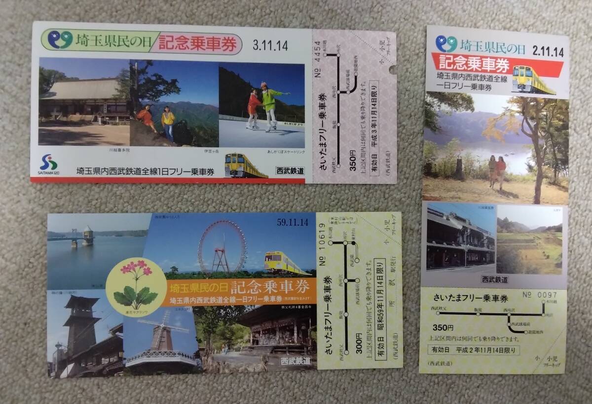 西武鉄道  埼玉県民の日フリー乗車券 現品限 3種類
