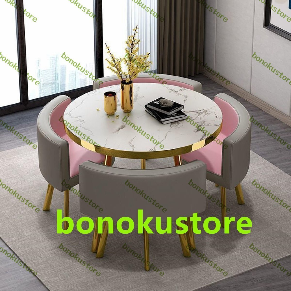 製品仕様: 【材質】レザー、木、布、金属 【テーブル】SET1:直径90×高さ75、SET2:直径80×高さ75 【チェア】幅63×高さ73 【SET】テーブル1台、椅子4脚 デザインには機能性と快適さが融合しています。広々としたテーブルは、仕事の道具やアートのクリエーションに最適なスペースを提供。そして、優雅な椅子は姿勢を支え、長時間の作業も疲れ知らずです。 ご家族でのお食事の時間をより楽しくお過ごしいただけます。 キッチン、ダイニングルーム、レストラン、コーヒーショップ、家庭での使用に適しています。。 ご注意: ①製品は完全に手作業で測定されており、1~3 cmの誤差が生じる場合があります。実際に受け取った商品を参照してください。 ②異なるモニタのために写真と実際の製品は、特定のエラーを持っているでしょう、製品は写真の装飾が含まれていない、それらに精通しているしてください。 ③家具は環境に優しい素材で作られています。 家具は工場で完成後すぐに梱包されます。 密閉された環境では、家具に臭いがつくことがあります。しばらく換気をすれば、新しい家具の臭いは自然に消えます。 ④テーブルと椅子のセットは別々の小包になる場合があり、同時に受け取ることはできませんのでご注意ください。 ⑤大型商品のため、品質以外の問題による返金や交換はできません ⑥製造および素材の性質上、製品には使用に差し支えない程度の小さな傷や欠陥がある場合があります。 気になる方はご注文をお控えください。