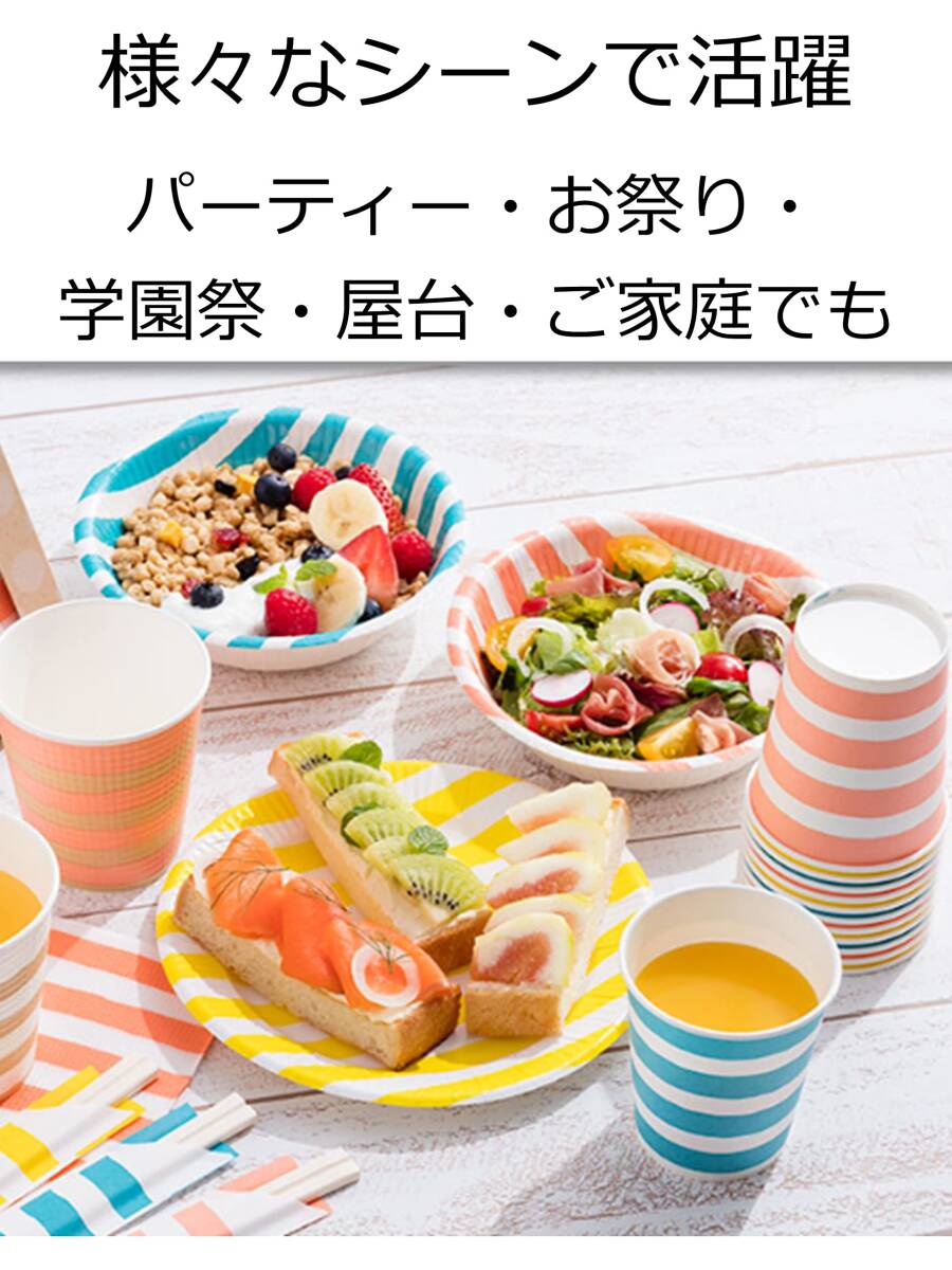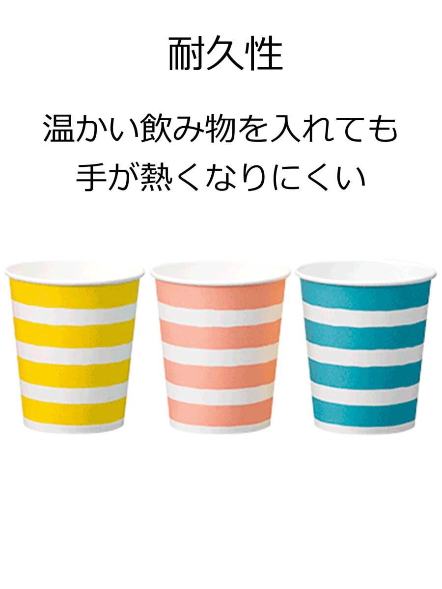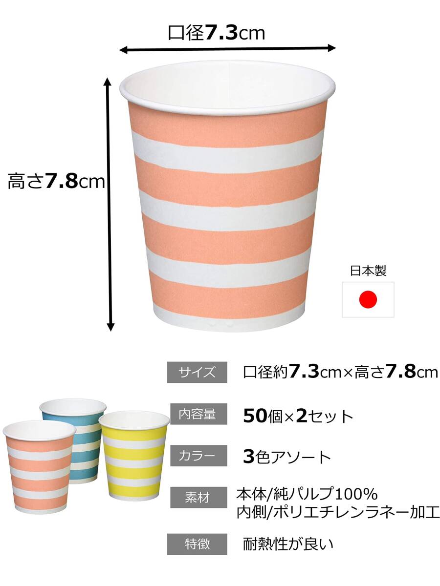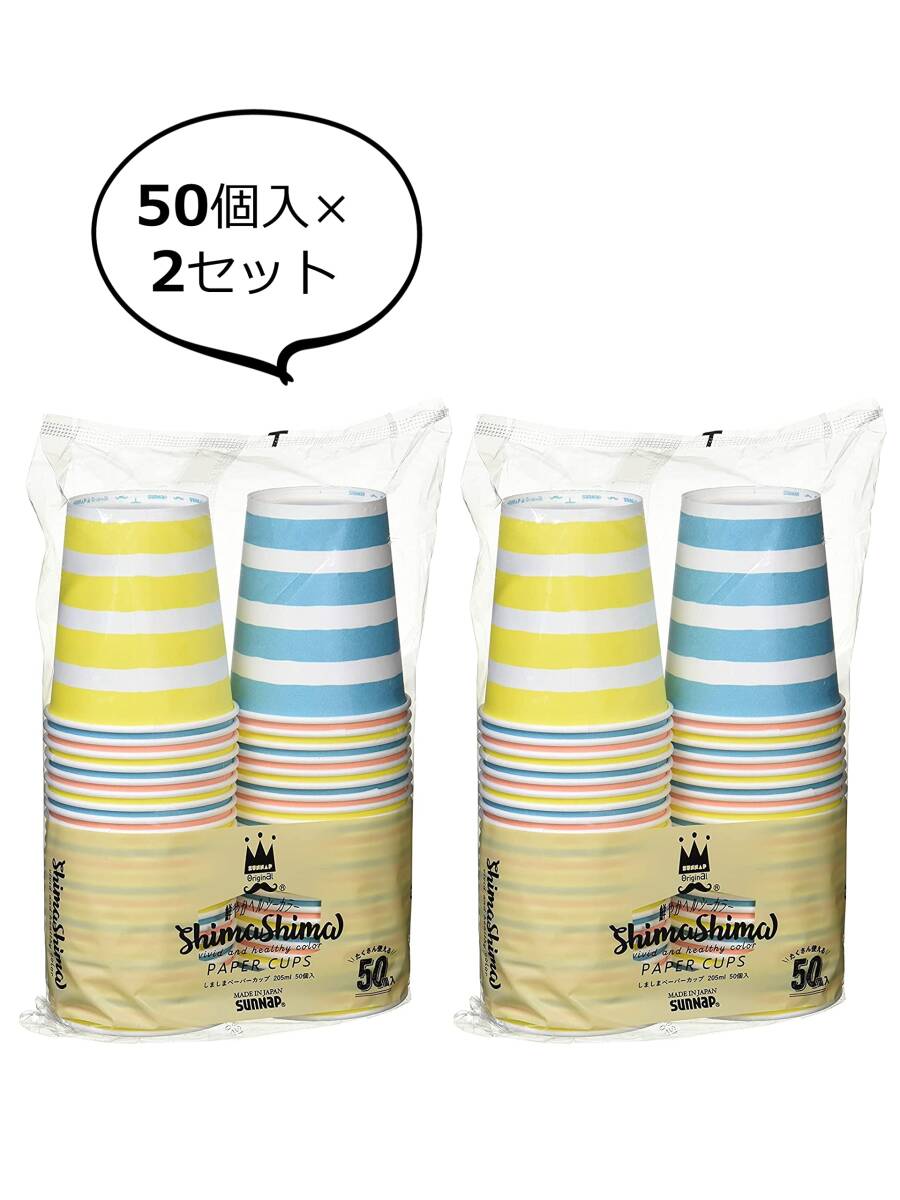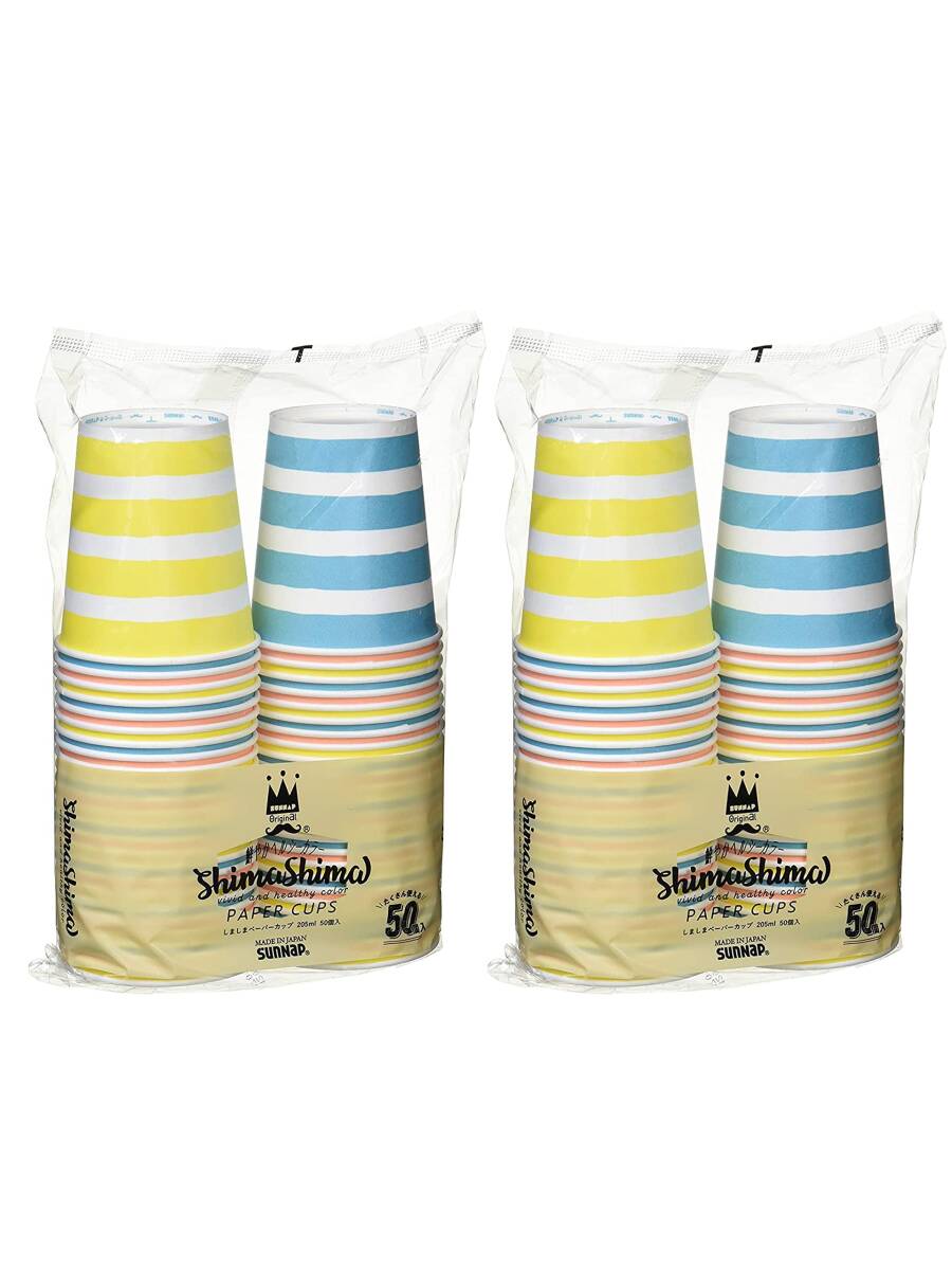 サンナップ 紙コップ しましま柄 205ml 50個入×2セット 口径7.3×底径5.2×高さ7.8cm ペーパーカップ ストライプ カラフル 日本製 簡易 食器