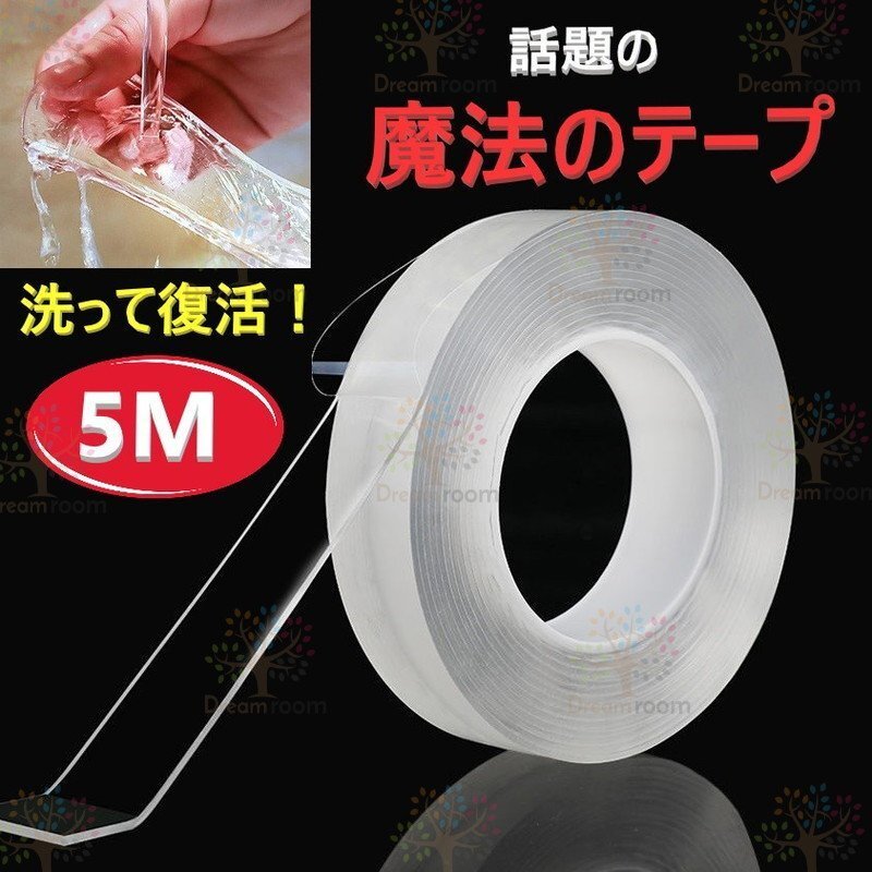 魔法のテープ 5M 透明 滑り止めテープ 強力粘着 3cm幅 両面テープ 防水 耐熱 地震対策 ナノマジックテープ 洗える