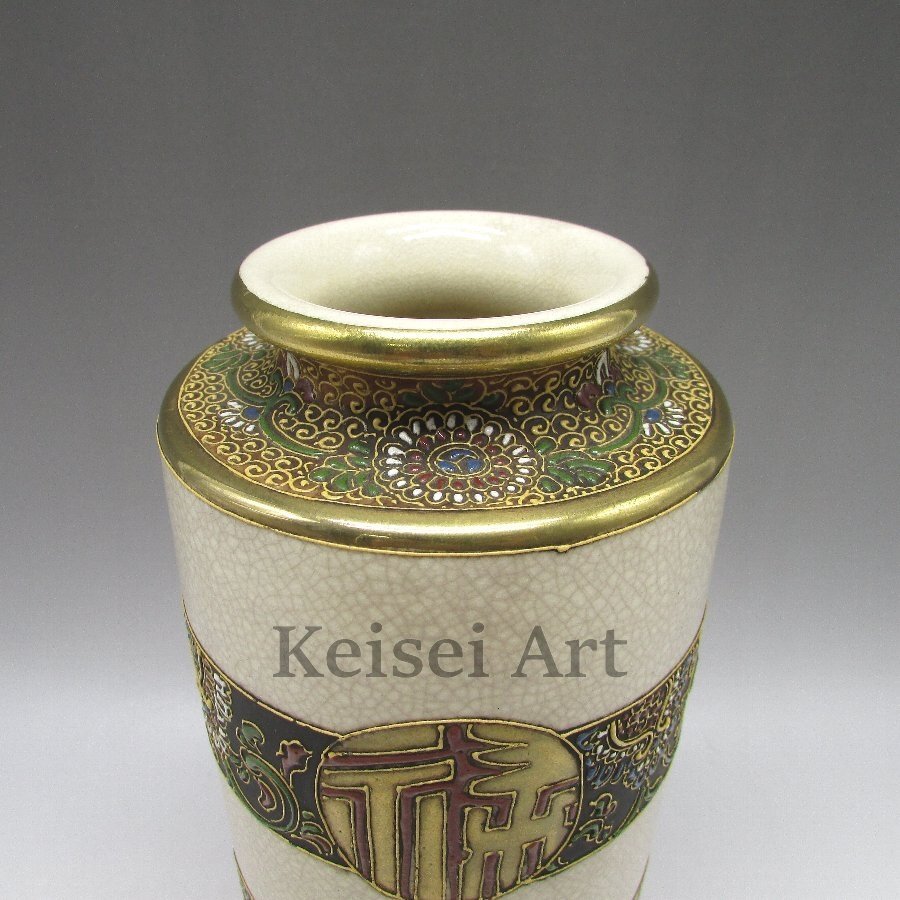 薩摩焼 金彩草花エナメル盛花瓶 東正山造 米国より里帰り