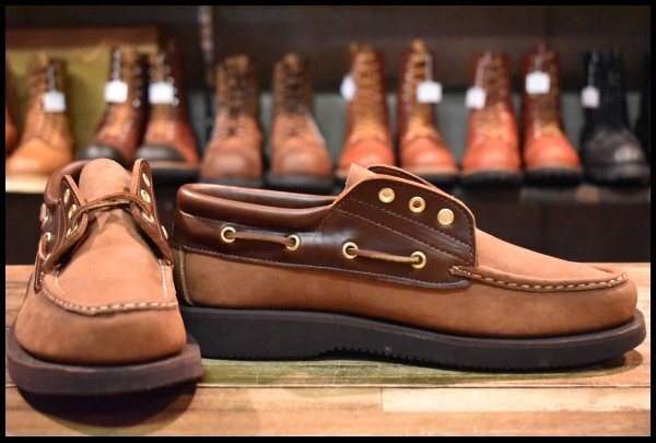 【8E 箱付 未使用】RUSSELLMOCCASIN ラッセルモカシン 13-7W デッキシューズ ブラウン ツートン 茶 短靴 ローカット ブーツ HOPESMORE