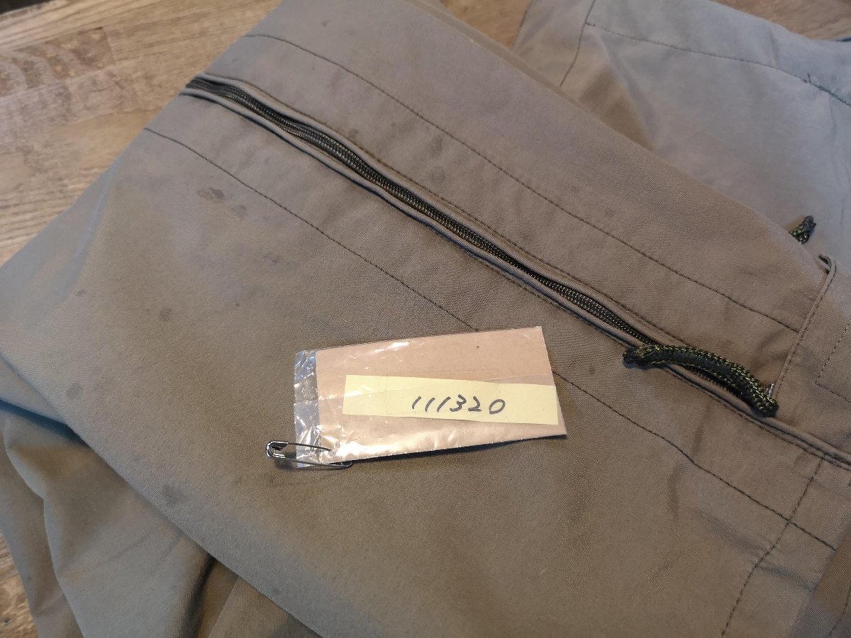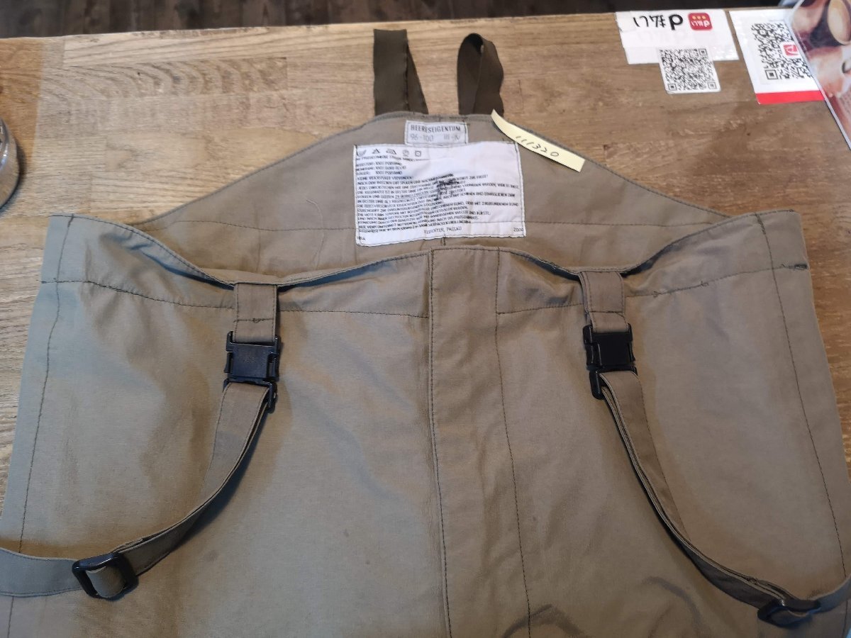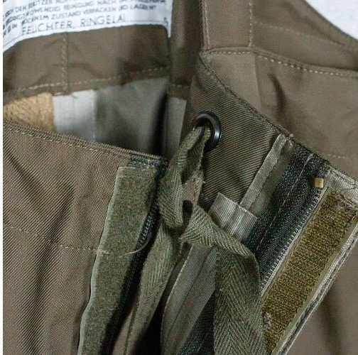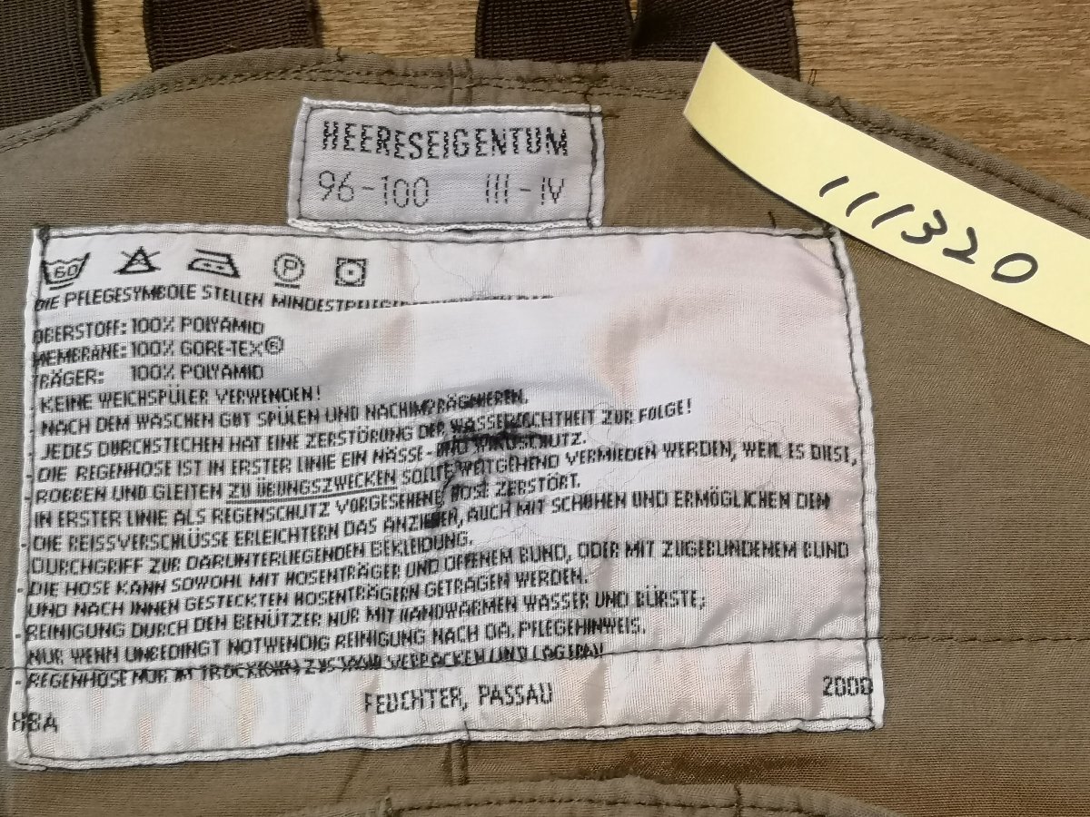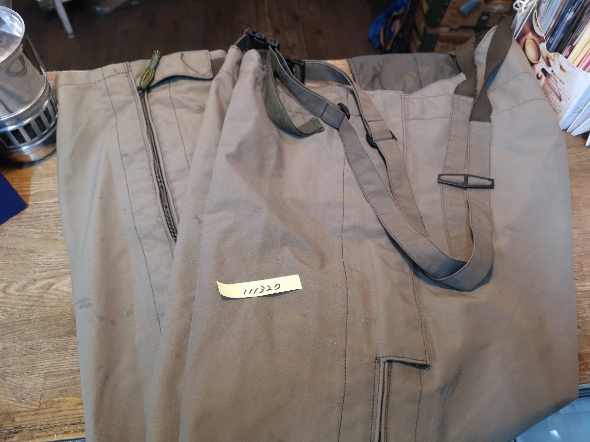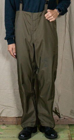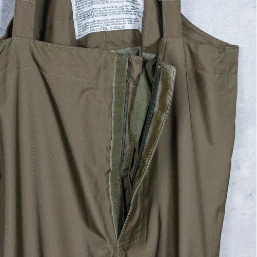 オーストリア軍にて採用されていたゴアテックスオーバーパンツです。7枚目までの写真は流用です。 流用写真と違って実物は薄緑な色合いです。 防水性と透湿性に優れたゴアテックスメンブレンが使われています。 両サイドはダブルジッパーにより上から下まで開閉します。 アウトドアなシーンからデイリーユースまで幅広くご愛用頂けるオーバーパンツです。 ●素材:ナイロン ●状態:中古ですので若干の汚れ、ゴムののびなどあります。 サイズ 96-100 ウエスト104cm、股上34cm、股下76cm、太もも幅36cm程度です。 沖縄離島を除く全国元払い500円でお送りいたします。落札価格にプラスでお願いします。1.2枚目の写真は流用です。