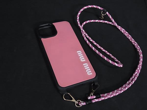 ■美品■ miumiu ミュウミュウ ラバー iPhone13 対応 アイフォンケース スマホケース レディース ピンク系 BS0445