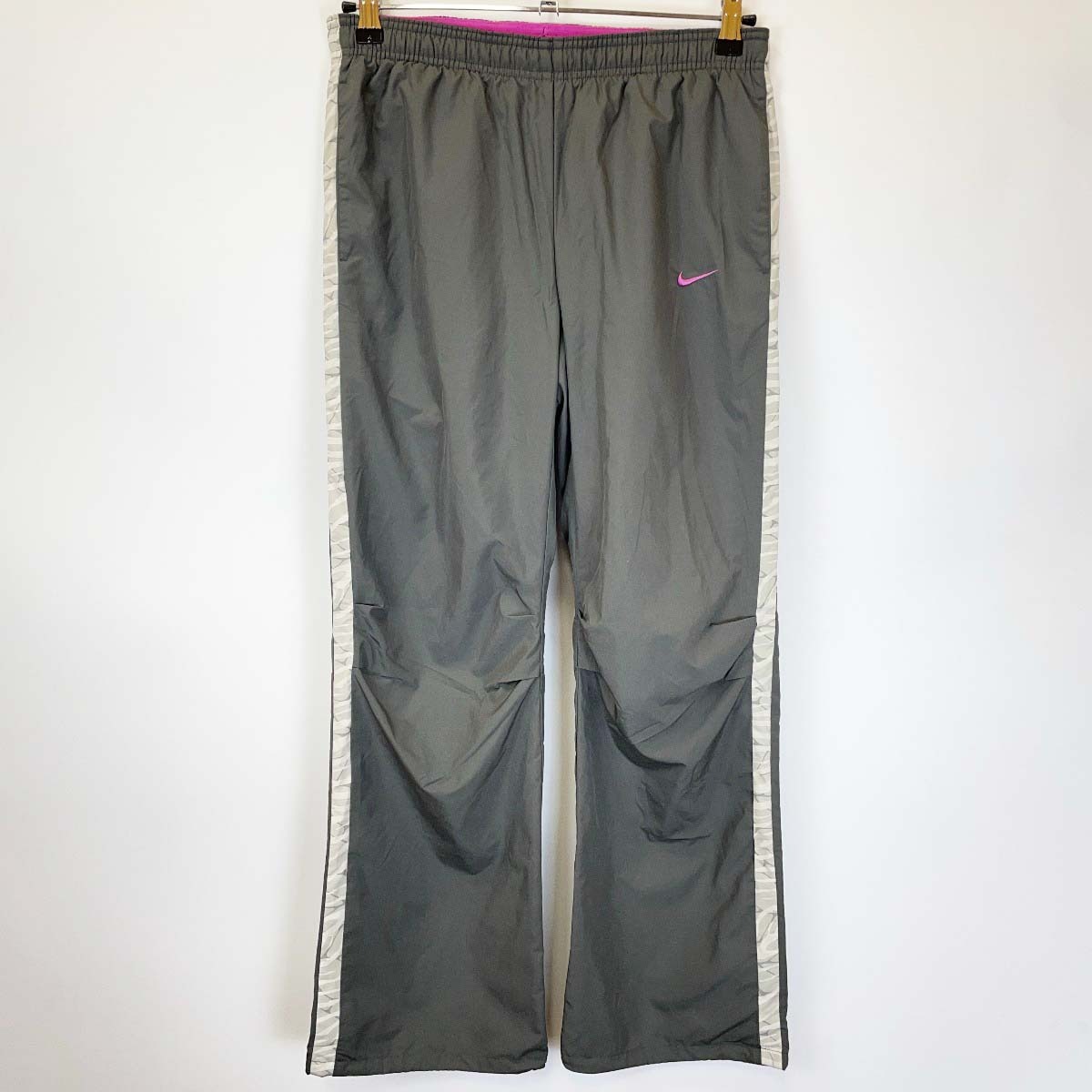 | ※商品は画像にあるものがすべてとなります。 【仕様】 ブランド:ナイキ タイプ:ウィンドパンツ 裏メッシュ ウインドブレーカー 表記サイズ:M 対象:レディース 型番:556132-065 カラー:グレー x ピンク 総丈:約94cm ウエスト:約34cm |