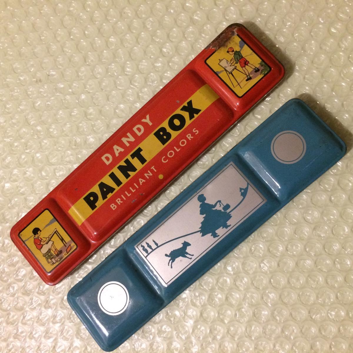 1960年代頃の絵の具筆入れ二個セットです。イラストがかわいくオススメの一品です。