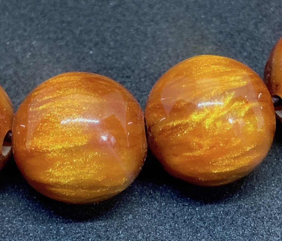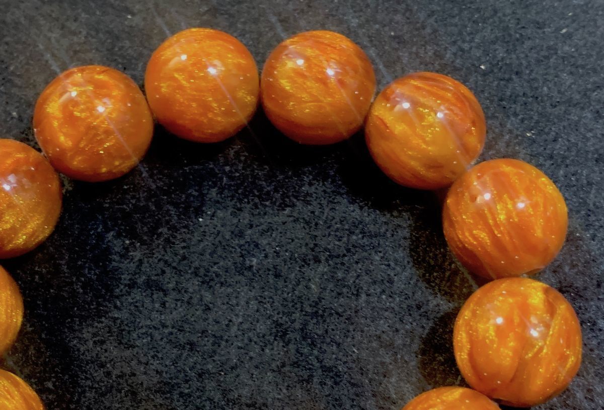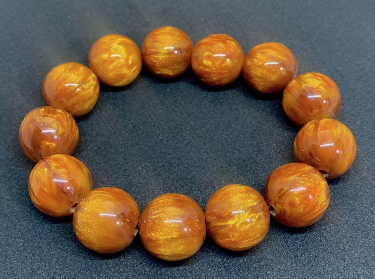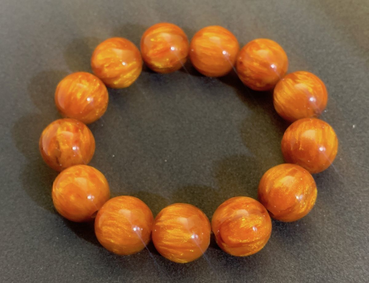 アンバーは鉱物ではないのですが、パワーストーンとしての意味を持ちます。アンバーは明るさと落ち着きを持ち、心身のエネルギーを整えると言われます。その中でもゴールデンアンバーは金運を運ぶとされています。そして何より見た目のインパクトは強烈。それでいて、軽くて扱いやすいのが特長です。