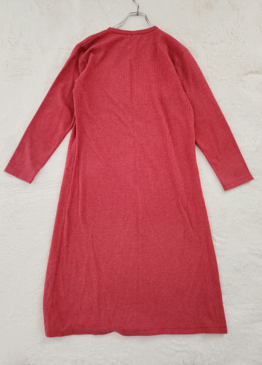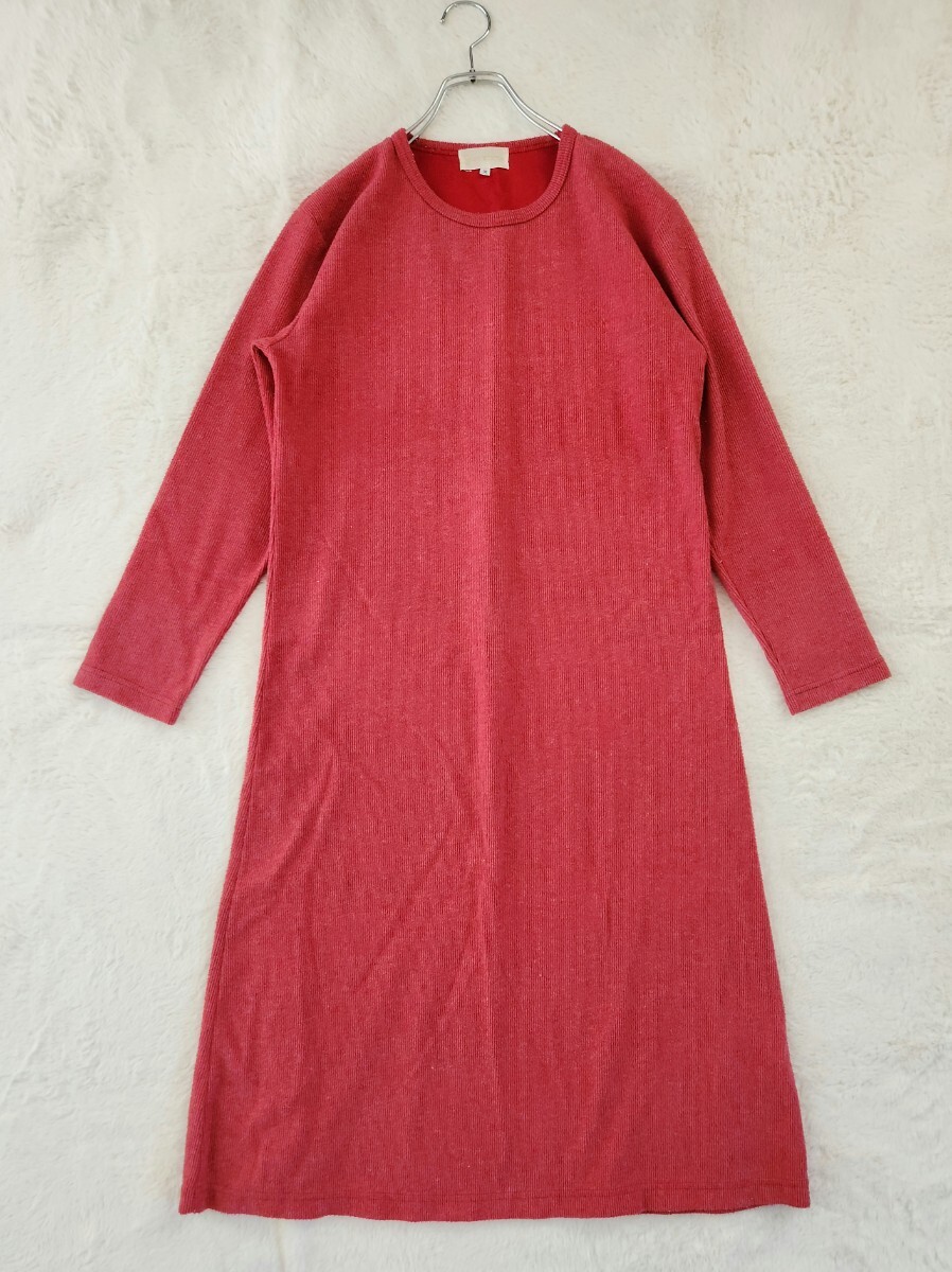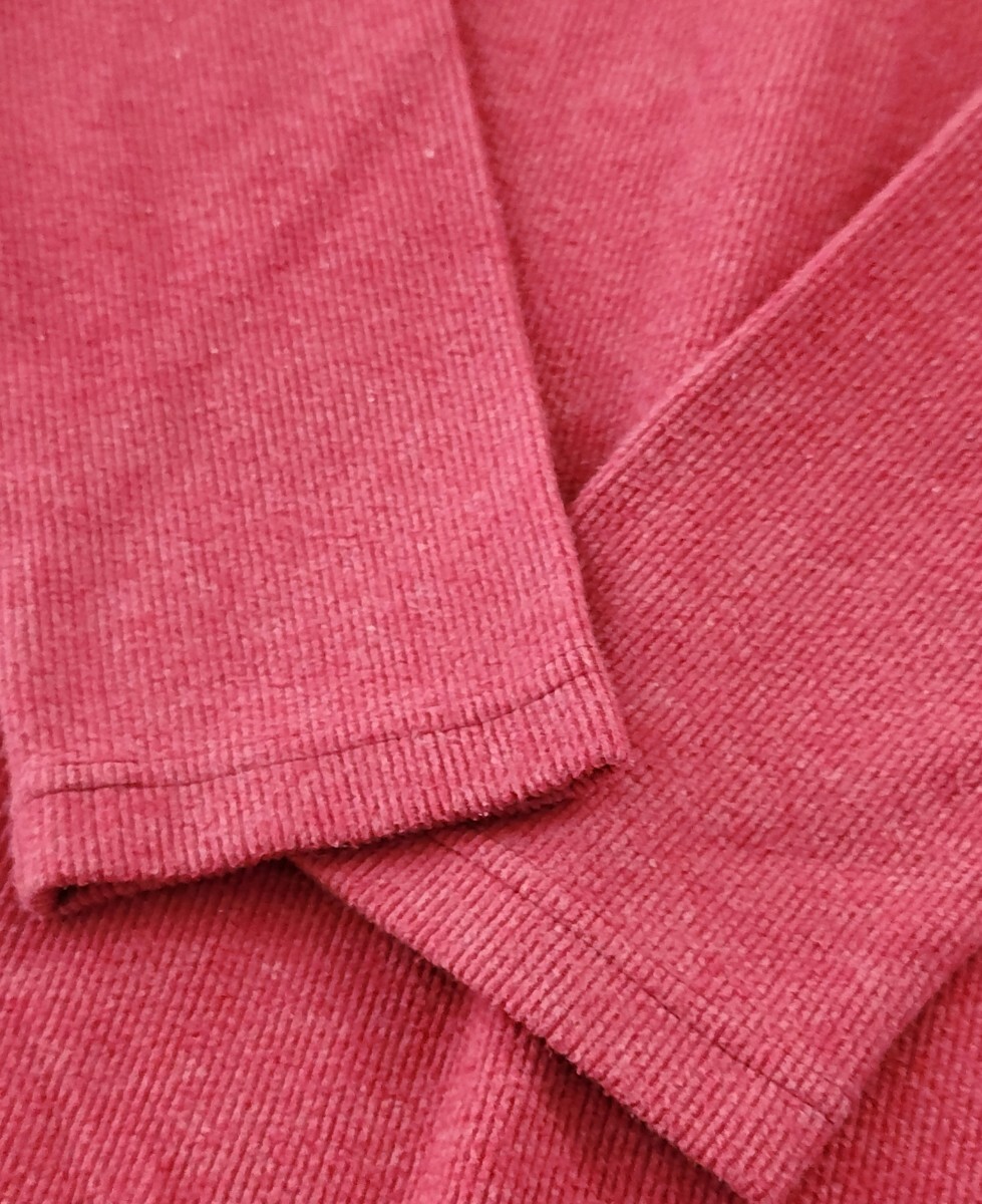 シンプルなリブ調デザインで着やすく、上品な赤のカラーが映える一枚。
