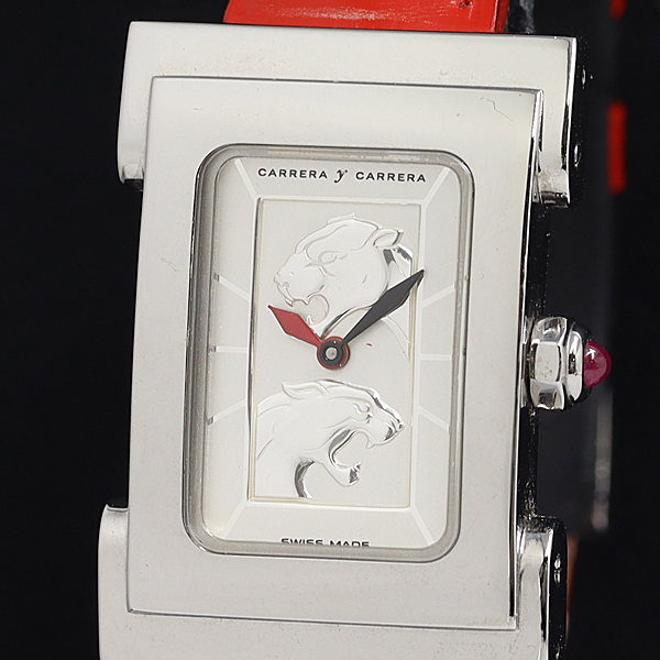 1円 保 稼働 良品 カレラ・イ・カレラ スクエア 302010 QZ シルバー文字盤 レディース腕時計 0023100 9ERT SMZ